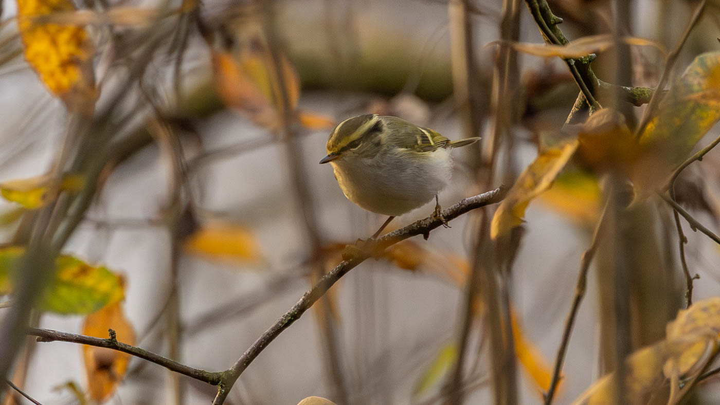 Op zondagochtend 7 december jl. vertrok ik op de fiets naar de Hofmans plassen, want hier was een Bladkoning gezien. Fiets geparkeerd en al meteen een Appelvink in de kijker. Ook al een Vuurgoudhaan gezien tussen de Goudhaantjes. Op weg naar de plek waar de Bladkoning was gezien waren veel Staartmeesjes aan het foerageren. Vrij snel dacht ik de Bladkoning te horen en kreeg ik deze ook in beeld. Wat later kwamen er nog een paar vogelaars om de Bladkoning te zien. Wat mee op en neer gelopen langs het pad, want het is een erg beweeglijk beestje. Af en toe te zien of te horen. Erg leuk maar na een tijdje besloot ik om terug te gaan richting fiets en naar huis. Toch nog even blijven hangen in een hoekje van de plas want er vliegt van alles. Appelvinken weer in beeld, Goudvinken vliegen over, nog steeds veel Goudhaantjes en een Vuurgoudhaan. Ook komt er een mannetje Kleine Bonte Specht langs. Bij een stukje met riet en wat lage struikjes zie ik een Koolmees vrij dichtbij zitten, dus proberen een foto te maken. Op dat moment komt er ook een klein vogeltje in de lens en ik klik een paar keer. Het leek erop of deze zich had gewassen en nu de veren wat aan het poetsen was. Ik dacht in eerste instantie aan een Vuurgoudhaan, maar toen ik de foto bekeek leek deze meer op de Bladkoning die ik deze ochtend gezien had, alleen het kruinstreepje klopte niet. Obsidentify erop losgelaten, en die gaf aan Pallas’ Boszanger! Daar had ik wel eens van gehoord, maar nog nooit gezien, dus ook niet herkend.