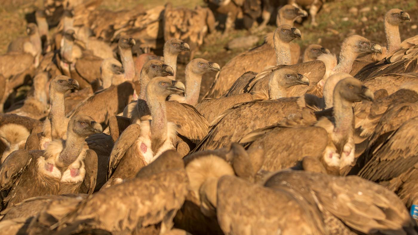 Na een Spaans ontbijt zijn we naar een supermarkt gereden waar we een afspraak hadden met een ranger. Deze ranger ging ons naar de volgende fotolocatie brengen. Deze hut ligt boven op een heuvel met prachtig uitzicht. Vanuit een groot raam (van buiten geblindeerd) keken we uit op een helling. Na enige tijd kwam er een vrachtwagentje met slachtafval. Het leek er wel op of de gieren de auto herkennen. Van allerlei kanten kwamen groepen Vale Gieren aanvliegen. Vanuit de auto werden er tonnen met slachtafval geloosd. Een 50-tal Vale Gieren stortten zich op het vleesafval. Een groepje van 10 Raven keken op afstand mee en probeerden af en toe wat mee te pikken. Binnen een uur was alles op. Boven ons vlogen 2 Lammergieren en Zwarte Wouwen. Helaas wilden de Lammergieren niet landen. Buiten de Vale Gieren om zagen we nog; Grijze Gors, Grote Lijster, Zwarte Roodstaart, Baardgrasmus, Grote Bonte Specht, Roodborsttapuit, Kleine Zwartkop, Torenvalk en een overvliegende Steenarend. Rond 14.00 uur werd er nog een verkeerslachtoffer gebracht, een Ree. Helaas kwamen hier geen vogels op af. Om 17.00 uur werden we weer door onze Spaanse gids opgehaald en naar de auto gebracht. In ons hotel hebben we ons tegoed gedaan aan een goede maaltijd.