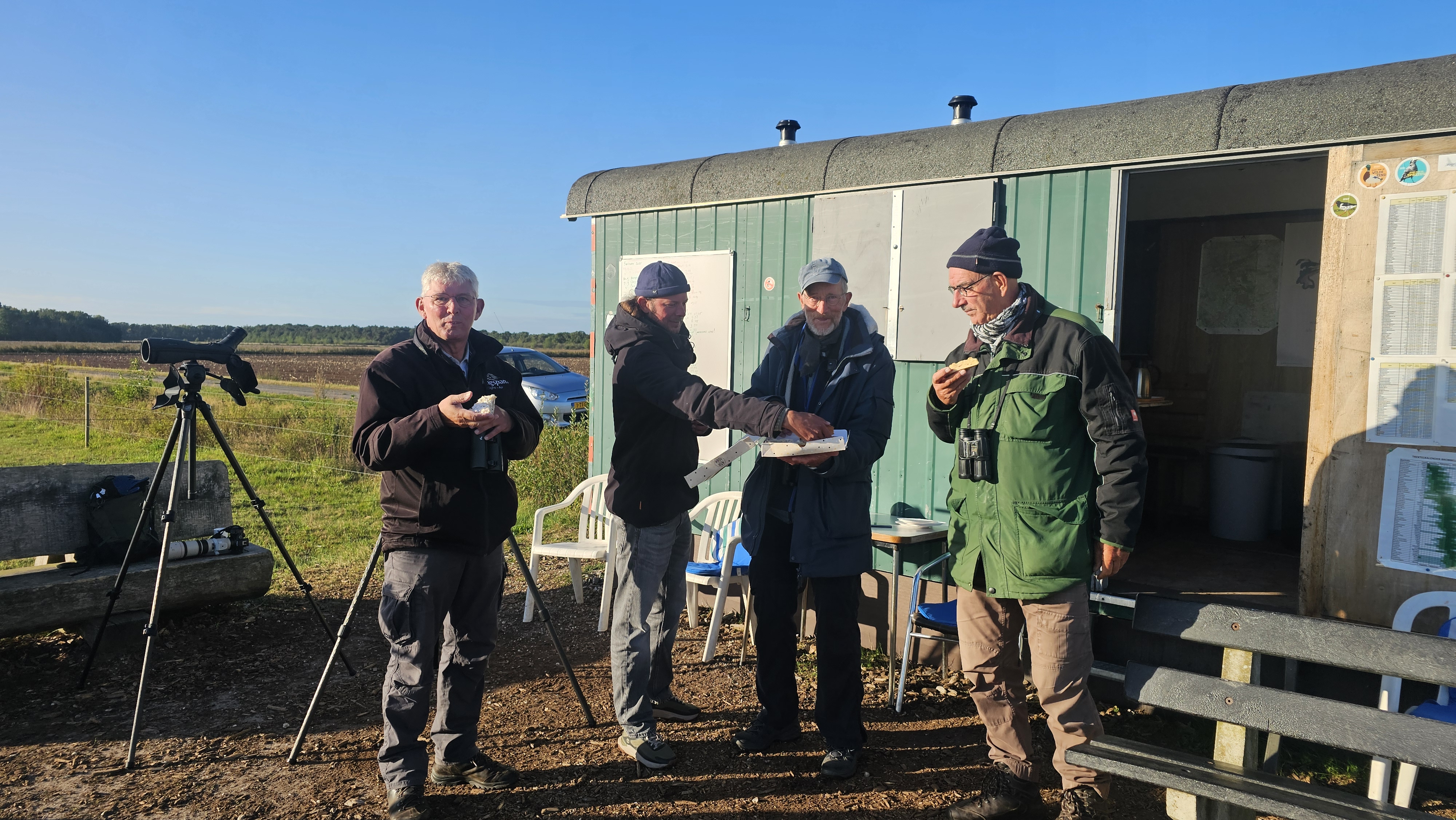 Half bewolkt, tot kracht 4 aantrekkende noordoosten wind, 9 ⁰C. In het eerste uur is er al goede trek van Spreeuwen, Boerenzwaluwen en Graspiepers en kort na elkaar komen er twee Bruine Kiekendieven over. Tegen 9 uur vliegen er 3 steltlopers boven de bosrand richting de Hofmans Plassen. Rosse Grutto’s! Het lijkt of ze bij de plassen naar beneden gaan. Daar is later op de ochtend wel gekeken, maar niks te zien, er werd ook volop gewerkt. De laatste Rosse Grutto was al weer 4 jaar geleden en daarvoor was het 2010. De eerste Keep van dit jaar wordt gehoord, helaas niet gezien. Een groep van 7 Grote Zilverreigers komt mooi recht boven de keet overgevlogen. We zien een Sperwer die bijna een Torenvalk slaat, de Sperwer probeert alsnog iets te vangen en verdwijnt dan uit beeld. Om kwart over 12 komt er een Blauwe Kiekendief over en een kwartier later een Visarend en in de loop van de dag zijn er ook nog enkele Buizerds (7), Sperwers (11) en meer Bruine Kiekendieven (7 totaal) over gekomen. Om kwart over 2 komt er ook nog een Rode Wouw langs.