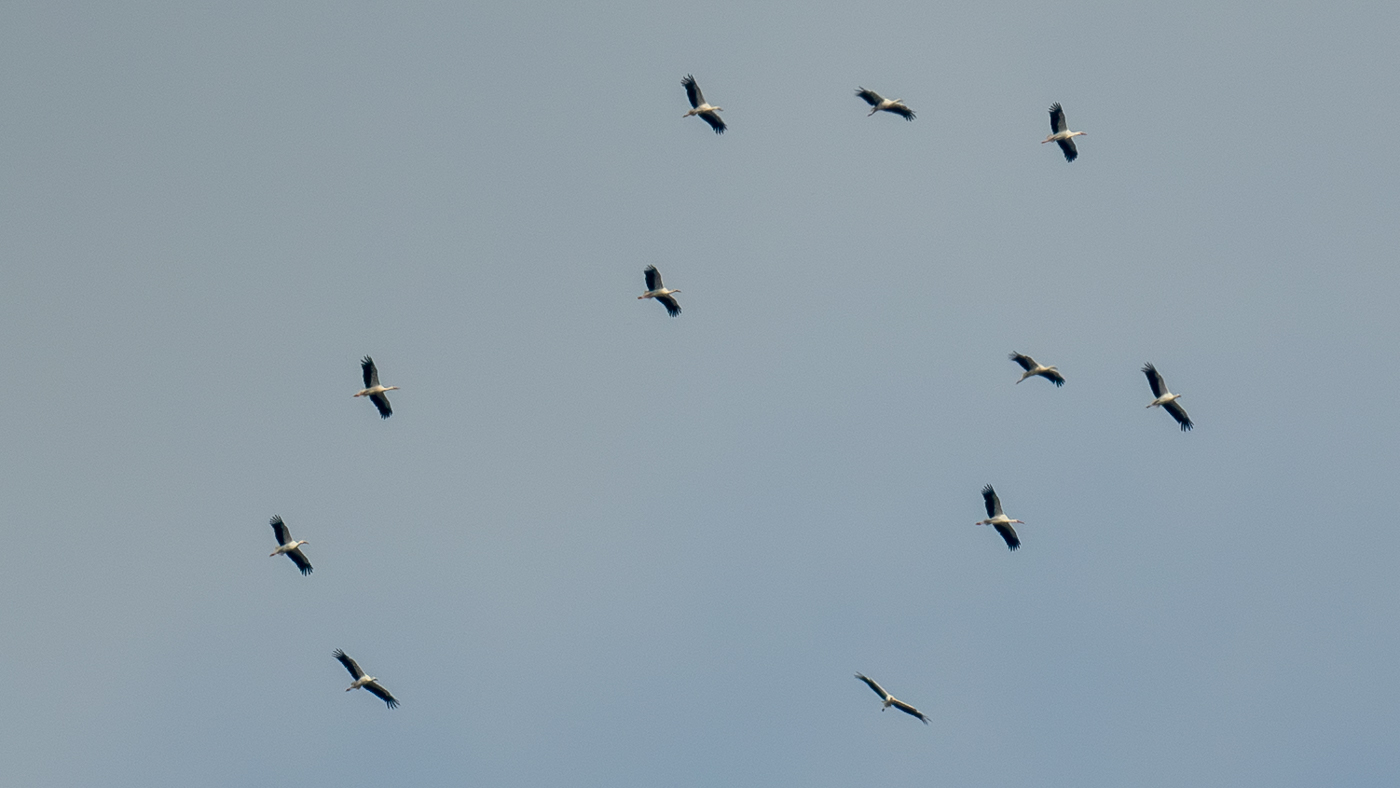 Wisselend bewolkt, matige tot vrij krachtige noordenwind, 16 ⁰C. Na een uurtje tellen met verschillende soorten zangvogels op trek komen er in korte tijd 3 Smellekens over, hoog. Twintig over 8 komt de eerste Bruine Kiekendief van vandaag over, de tweede volgt op ruim een half uur. Rond die tijd vliegen er ook twee Casarca’s over. Het volgende uur zien we 5 Bruine Kiekendieven, maar het kan nog beter; 29 Bruine Kiekendieven in één uur tijd. De Boerenzwaluwen komen met enkele honderden per uur nu door, er komen ook nog Huiszwaluwen langs. Ook de Ooievaars blijven komen, eerst 3 maar daarna nog eens 44 (waaronder 26 in één groep) en de grootste groep Lepelaars ooit komt over: 15 Lepelaars. Dat is een nieuw dagrecord. Ondertussen vliegen de Bruine Kiekendieven nog steeds, maar wel in lagere aantallen. Er komen ook Buizerds, Sperwers, Torenvalken en een Boomvalk over en om 10 voor 2 komt er een Zeearend over, een subadult. Verspreidt over de dag kwamen er ook Kleine Mantelmeeuwen over, 28 in totaal. Ook de Blauwe Reiger vloog goed met 19 exemplaren. De teller van de Bruine Kiekendief kwam uit op 53, het verse dagrecord van 38 op 7 september is dus flink verbeterd!