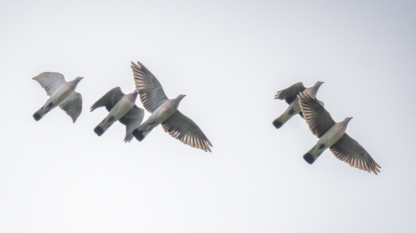 Vrijwel geheel bewolkt, zwak tot matige noordelijke wind, 15⁰C. Het is wat heiig, maar mist kun je het niet noemen. Een groep van 60 Houtduiven en een groep van 23 Kokmeeuwen zijn de opvallende waarnemingen in de eerste uren. Verder vliegen er wat ganzen en vooral verschillende zangvogels, maar geen grote aantallen. Na 10 uur komen er groepen van tientallen Kramsvogels over en om kwart voor 12 nog een Casarca en even later een groep kleine vogeltjes met een manier van opstijgen die aan Baardmannen doet denken. Als ze goed in beeld zijn blijken het Staartmezen te zijn, ook leuk. Na twaalf uur beginnen de Houtduiven opeens goed te vliegen, met onder andere twee groepen van meer dan 1000 vogels. Rond die tijd zien we ook een Beflijster. De Houtduiven blijven vliegen, 2500, bijna 4000, 1750 vogels in een uur. Na 3 uur zakt het in. Ondertussen zijn er ook wat roofvogels overgevlogen, enkele Sperwers en Buizerds en 3 Bruine Kiekendieven en 3 Smellekens. Om half 4 komen er ook nog 2 Rosse Vleermuizen over. In totaal kwamen er vandaag 8518 Houtduiven op trek over.