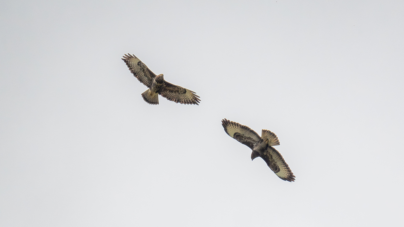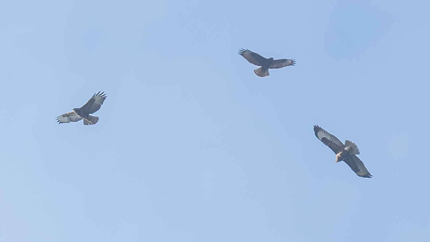 De hele dag zwaar bewolkt met enkele kleine opklaringen. De wind kwam uit zuidoostelijke richting en was matig met een kracht 2 aantrekkend tot 3. De temperatuur liep op van 7 tot 13 graden gedurende de telling. Vandaag meer trek en Jan had ook meer hulp. De matige zuidoostelijke wind heeft een gunstige invloed op de trekvogels. De eerste Kraanvogels van dit jaar werden gezien net na de middag. Een groepje van 20 vogels en later nog een solitaire. Een Rode Wouw vloog om kwart over twee over de telpost. De Buizerds vlogen redelijk met 147 exemplaren maar stiekem hadden we er toch meer verwacht. Naast 5 Sperwers en 1 Slechtvalk vlogen er verder geen rovers. Wederom een Beflijster vandaag, de vogel vloog om 12:49 uur over de telpost. De Veldleeuweriken beginnen nu echt door te komen en vandaag werden er 880 geteld. Er werd geteld tot 16:00 uur.