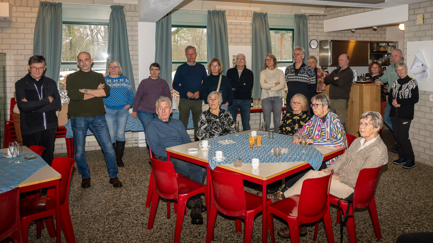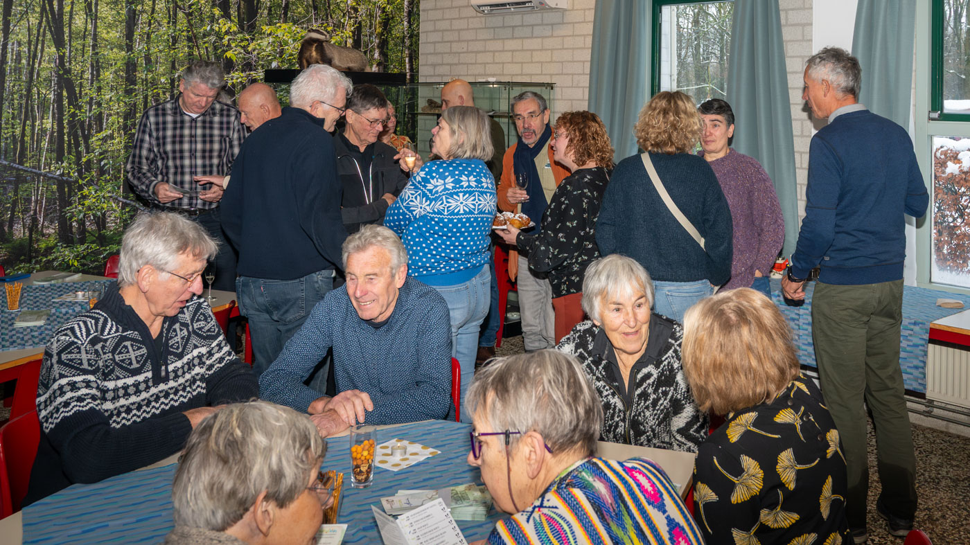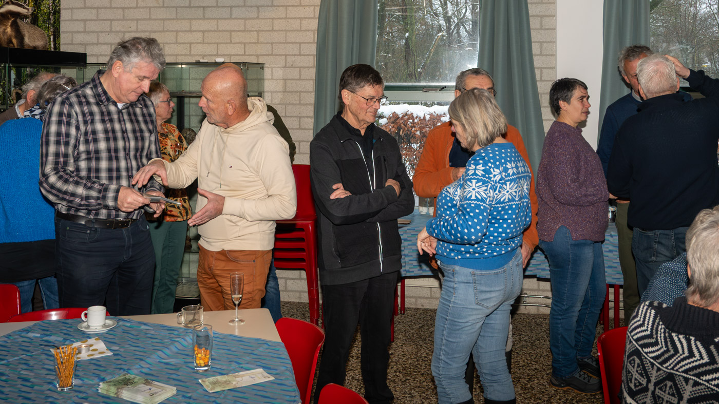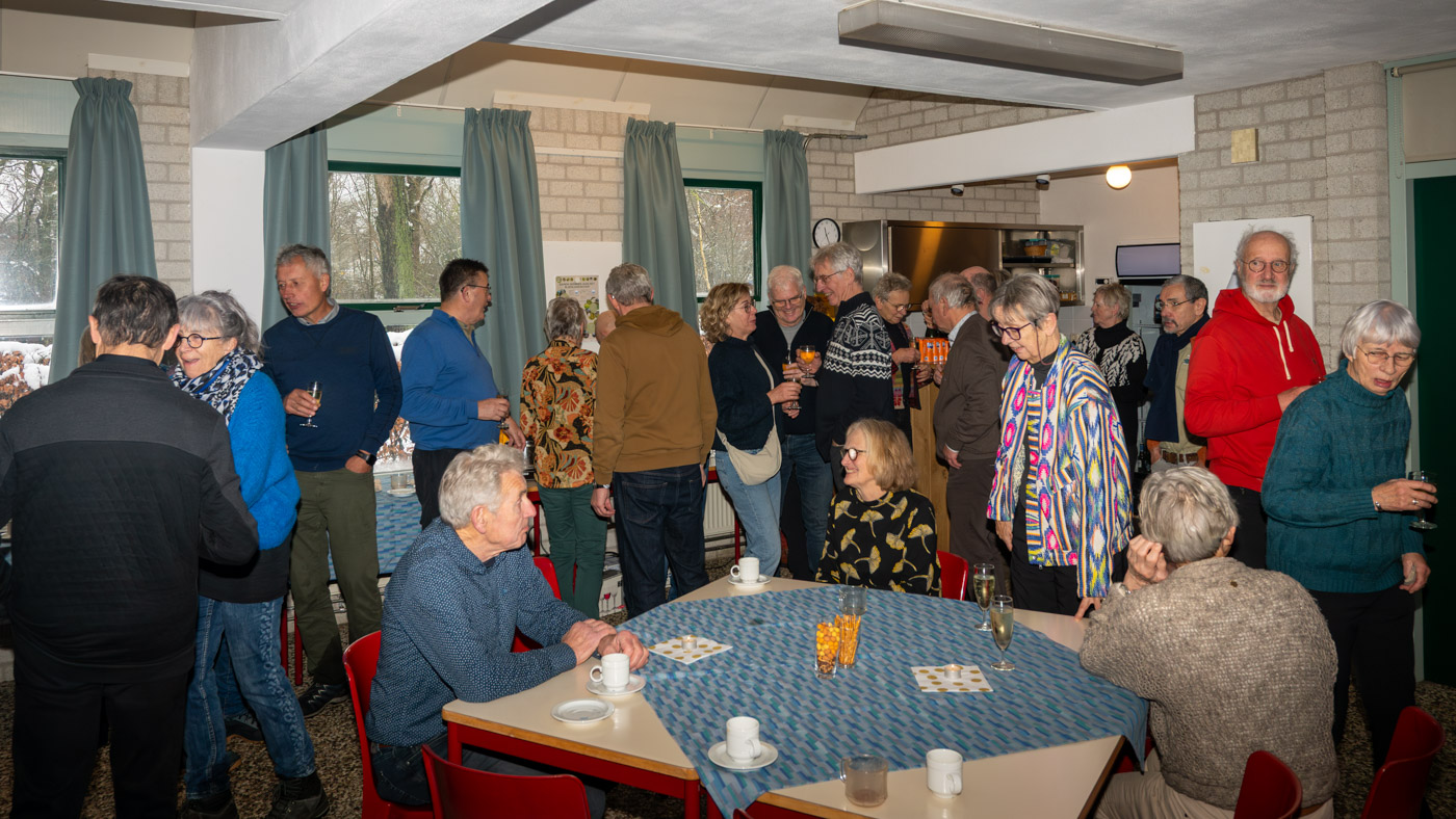 Zo tegen elf uur kwamen de wandelaars ook binnen en waren er totaal toch nog ruim 35 leden komen opdagen. Mignon van den Wittenboer had een flinke voorraad oliebollen gebakken met 3 soorten vulling erin. Die vonden met dit weer gretig aftrek. De drie voorzitters, te weten Jan-Willem Hermans, Berry Dufornee en Willem Peters hielden ieder een korte nieuwjaarstoespraak. De gezamenlijke Natuur Activiteiten folder 2026 van de drie verenigingen werd zoals gebruikelijk tijdens de nieuwjaarsreceptie weer gepresenteerd. Er is komend jaar keuze genoeg uit lezingen, wandel- en fietsexcursies en natuurwerkdagen. Daarna werden de champagneglazen gevuld en werd het glas geheven op een mooi 2026. Tot rond half een werd er onderling nog van alles besproken en daarna was de nieuwjaarsreceptie alweer voorbij en kon iedereen voorzichtig huiswaarts keren.