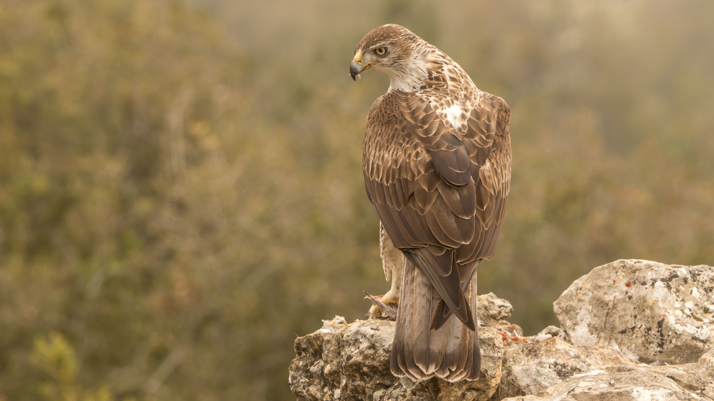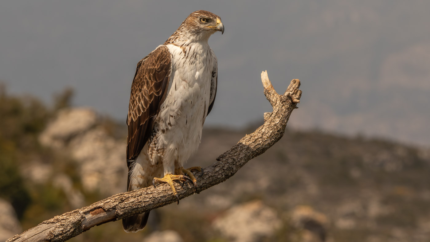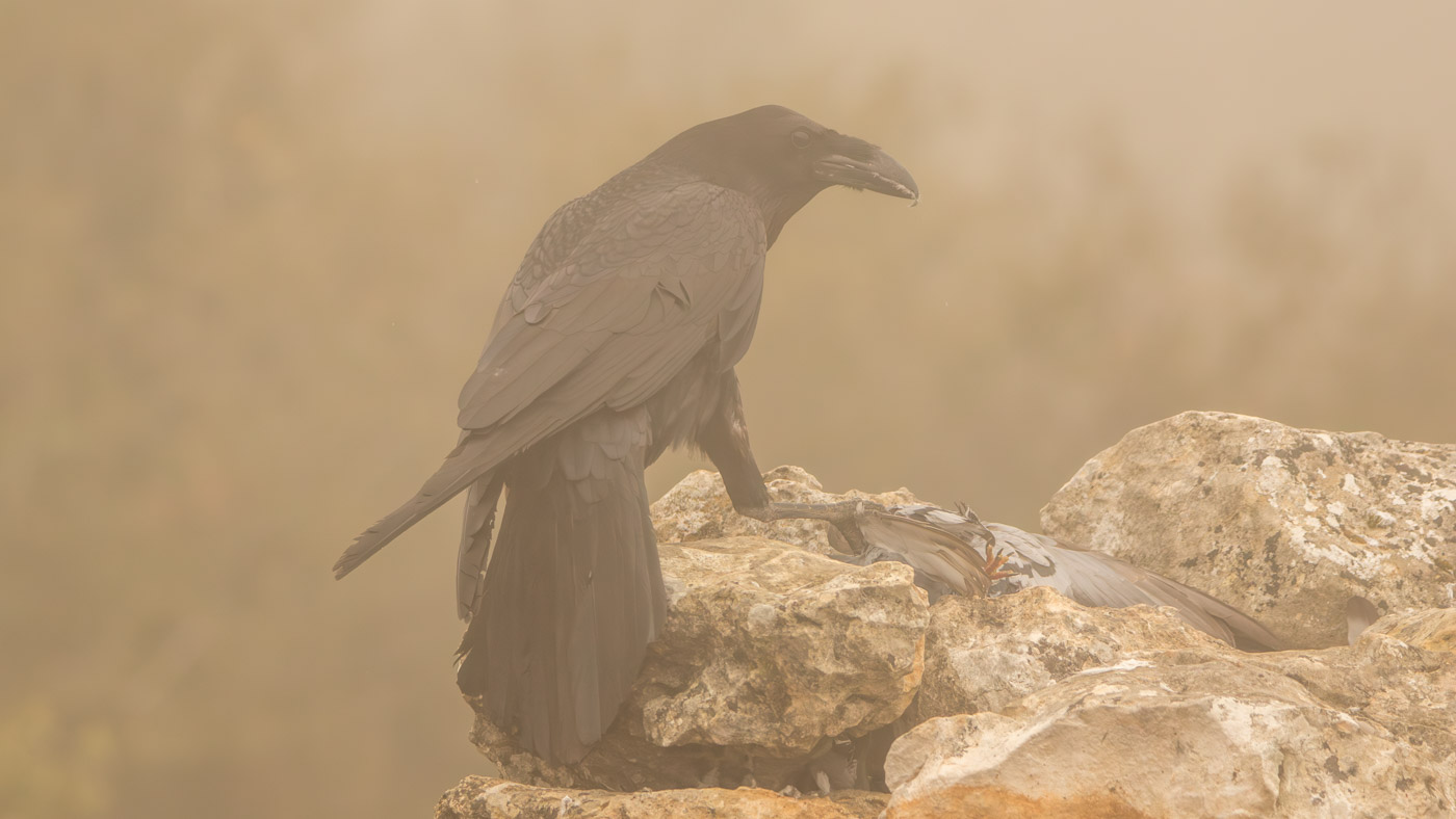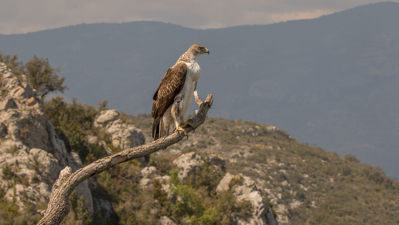 Om 7.30 werden we opgehaald om naar de eerste hut te gaan. Het doel was om de Havikarend te fotograferen. Het was nog koud en ook mistig. Een dode duif en een aangereden konijn lagen op een rots als lokvoer voor de Havikarend. Na 2 uur kwam de eerste vogel in de mist aanvliegen, een Raaf. Rond 12 uur kwam onze doelsoort aan, de Havikarend. Een mooi Havikarend ging prachtig op een dode tak zitten en liet zich fraai bekijken. Na goed rondgekeken te hebben begon hij te eten, na dit eten zat deze met volle krop nog een tijdje op de dode tak. In de omgeving zagen we verder nog een Blauwe Rotslijster, Rotszwaluwen en onze eerste Vale Gier. De Havikarend vertrok na enige tijd en vloog nog enkele rondjes rondom de hut. Na dit moois zijn we gestopt met fotograferen en hebben onze Spaanse gids gebeld om ons op te halen. Bij een lokaal café hebben we onze lunch genuttigd en konden we naar de volgende fotolocatie.