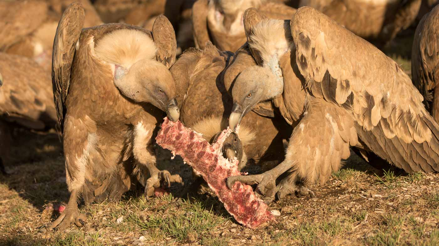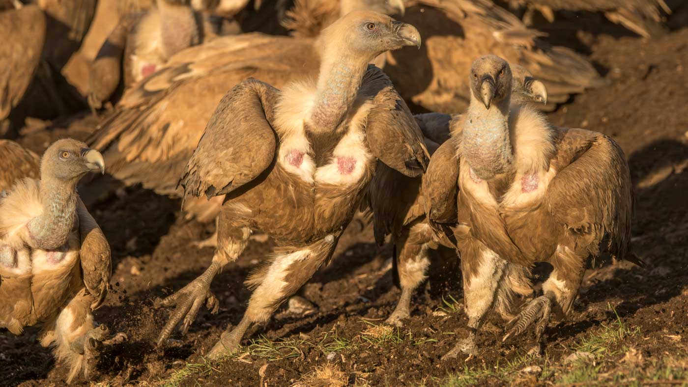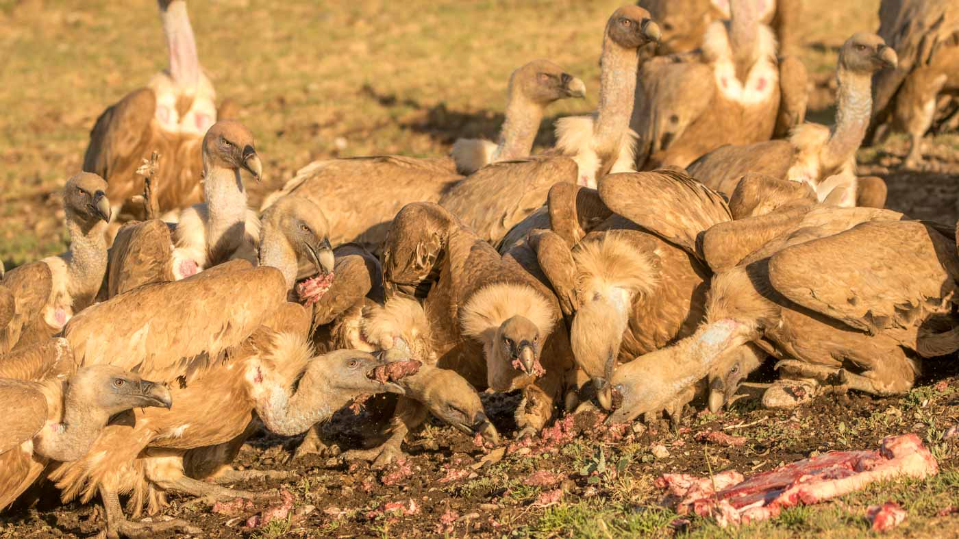 Na een Spaans ontbijt zijn we naar een supermarkt gereden waar we een afspraak hadden met een ranger. Deze ranger ging ons naar de volgende fotolocatie brengen. Deze hut ligt boven op een heuvel met prachtig uitzicht. Vanuit een groot raam (van buiten geblindeerd) keken we uit op een helling. Na enige tijd kwam er een vrachtwagentje met slachtafval. Het leek er wel op of de gieren de auto herkennen. Van allerlei kanten kwamen groepen Vale Gieren aanvliegen. Vanuit de auto werden er tonnen met slachtafval geloosd. Een 50-tal Vale Gieren stortten zich op het vleesafval. Een groepje van 10 Raven keken op afstand mee en probeerden af en toe wat mee te pikken. Binnen een uur was alles op. Boven ons vlogen 2 Lammergieren en Zwarte Wouwen. Helaas wilden de Lammergieren niet landen. Buiten de Vale Gieren om zagen we nog; Grijze Gors, Grote Lijster, Zwarte Roodstaart, Baardgrasmus, Grote Bonte Specht, Roodborsttapuit, Kleine Zwartkop, Torenvalk en een overvliegende Steenarend. Rond 14.00 uur werd er nog een verkeerslachtoffer gebracht, een Ree. Helaas kwamen hier geen vogels op af. Om 17.00 uur werden we weer door onze Spaanse gids opgehaald en naar de auto gebracht. In ons hotel hebben we ons tegoed gedaan aan een goede maaltijd.