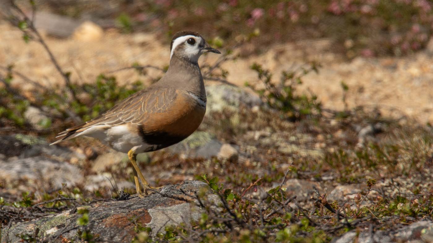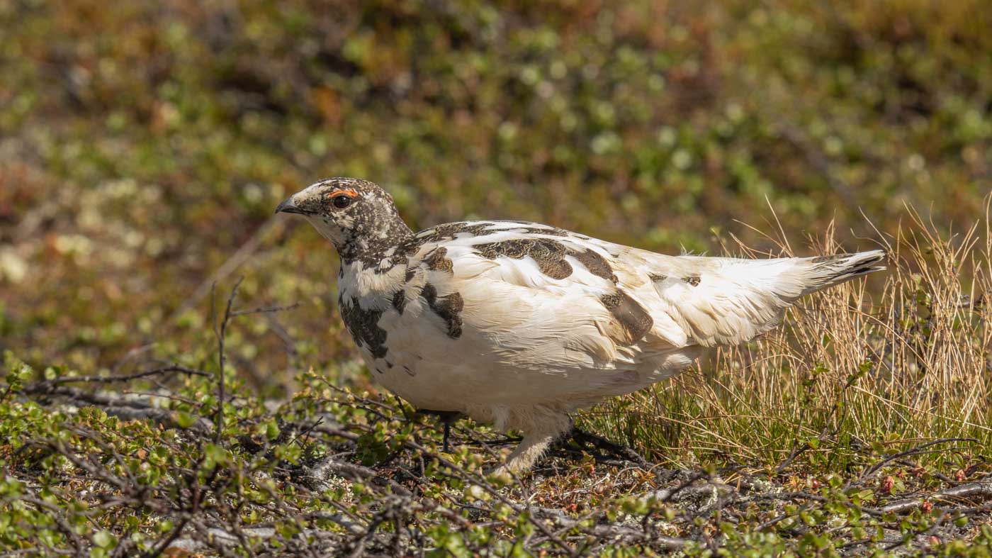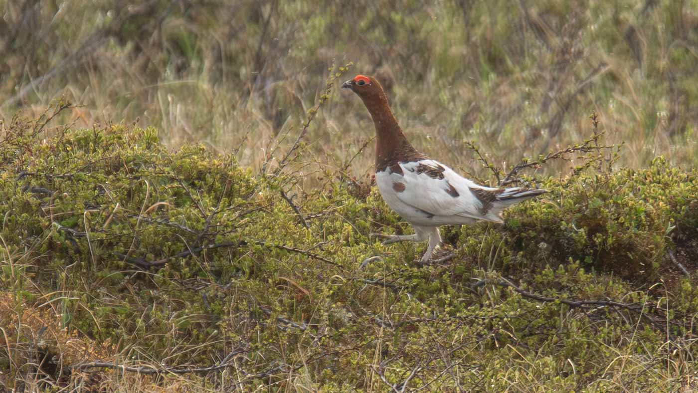 Onderweg hoorden een Morinelplevier roepen en zijn we er gaan zoeken, maar helaas niet teruggevonden. Er zat wel een Goudplevier op de heuvel. Een paar Alpensneeuwhoenders waarvan het mannetje bijna volledig wit was zaten er ook in de buurt. Ook op diverse plekken waren de IJsgorzen hier aan het zingen. Een Sneeuwhaas met zijn witte poten rende voor ons uit.