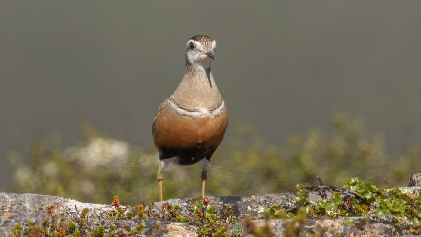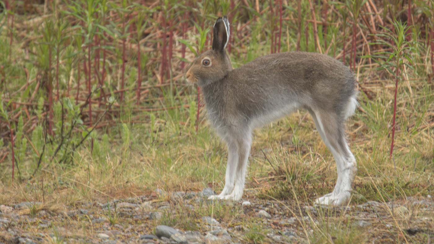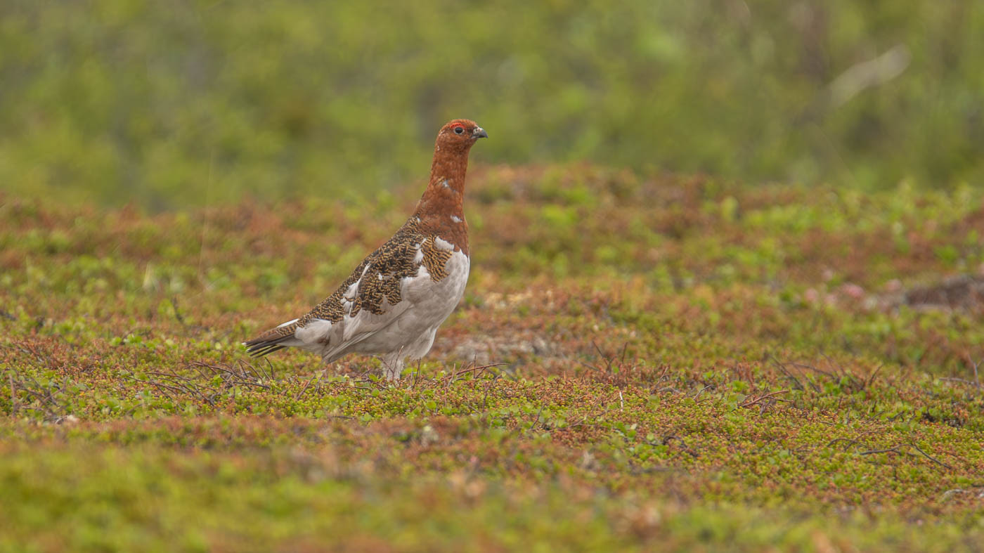 Onderweg hoorden een Morinelplevier roepen en zijn we er gaan zoeken, maar helaas niet teruggevonden. Er zat wel een Goudplevier op de heuvel. Een paar Alpensneeuwhoenders waarvan het mannetje bijna volledig wit was zaten er ook in de buurt. Ook op diverse plekken waren de IJsgorzen hier aan het zingen. Een Sneeuwhaas met zijn witte poten rende voor ons uit.