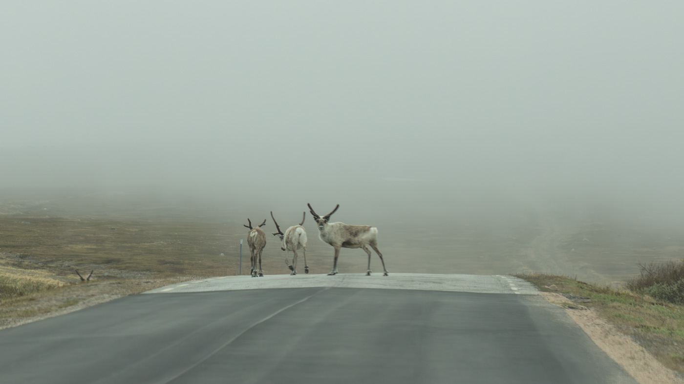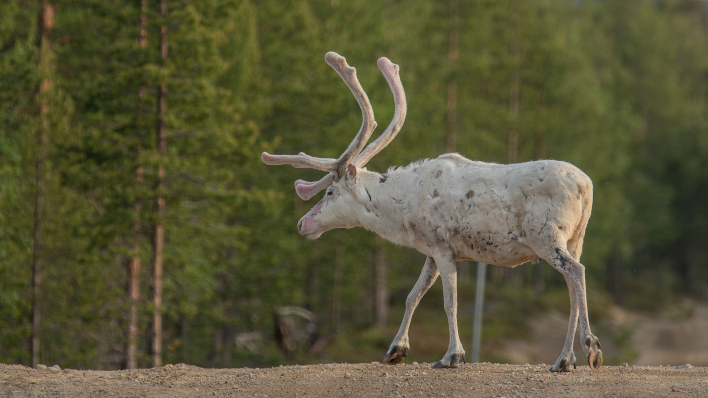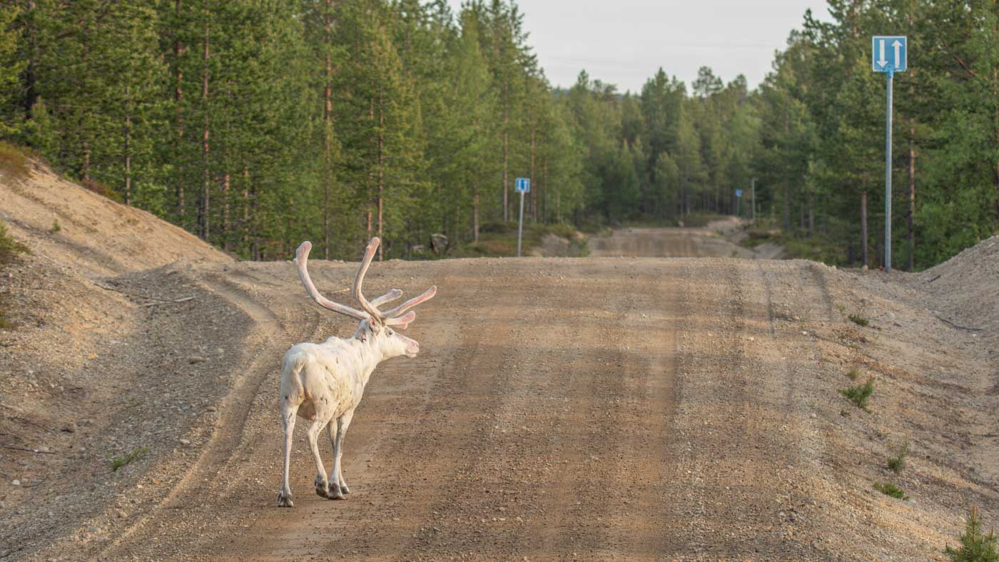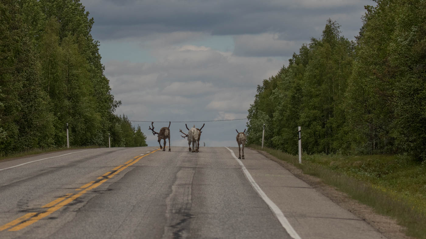 De reis naar Kuusamo (255km) was een heel stuk door een eentonig bosgebied. Tussentijds zijn we bij diverse meren gestopt waar Brilduikers en Wilde Zwanen te zien waren. Tijdens een plaspauze liet een Gekraagde Roodstaart zich mooi zien en op de foto te zetten. Na enige tijd kwamen de eerste Rendieren in beeld, deze waren niet te missen aangezien ze midden op de weg liepen. Hier werd al door vele borden gewaarschuwd. Plots riep John ‘Eland’. We reden een stuk terug om deze mooi te kunnen zien.