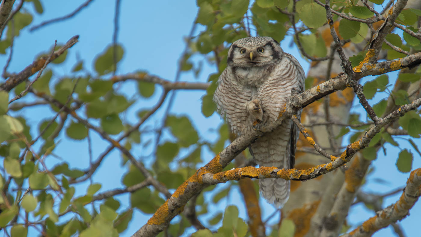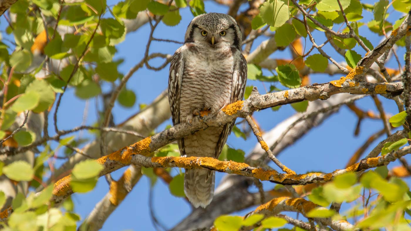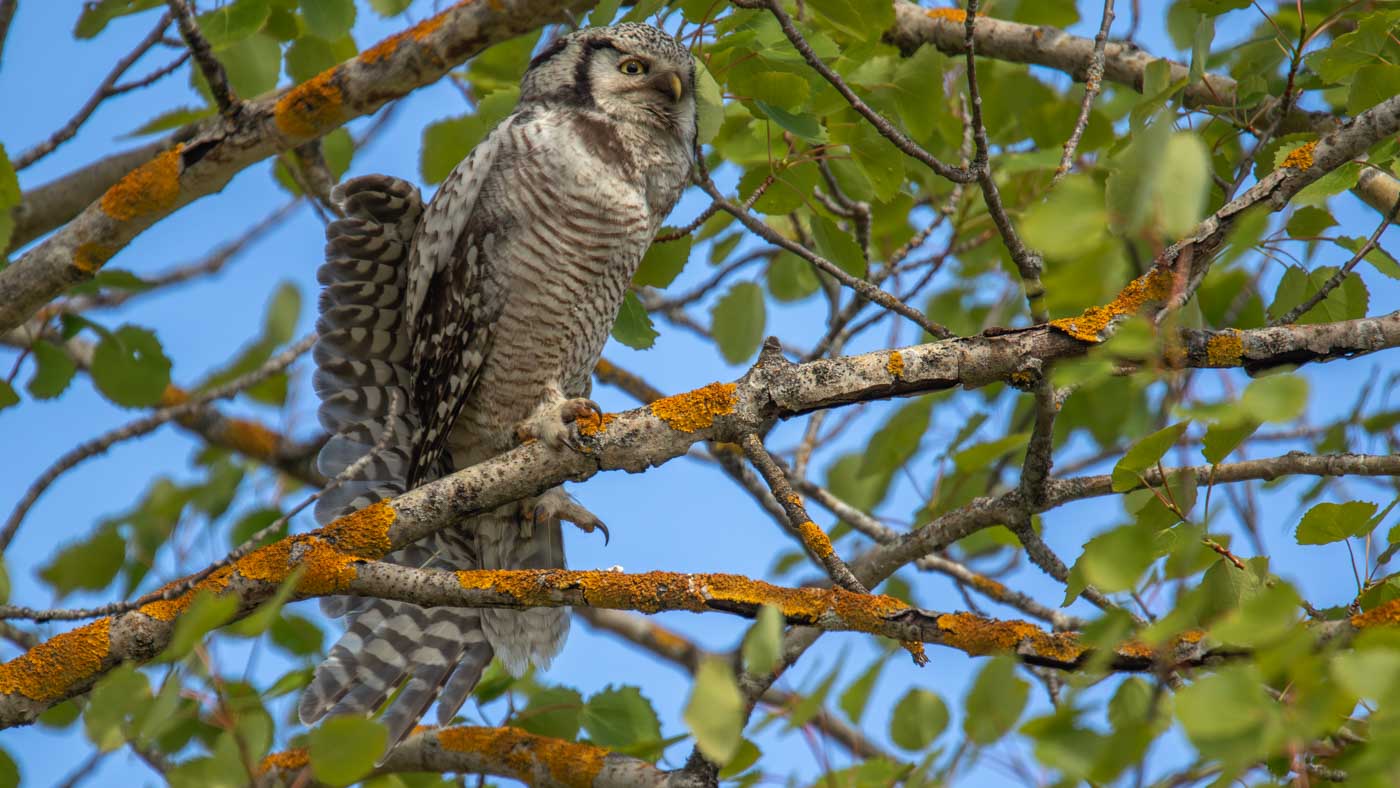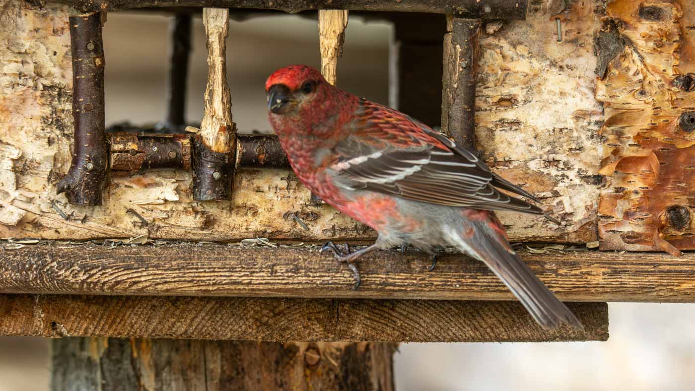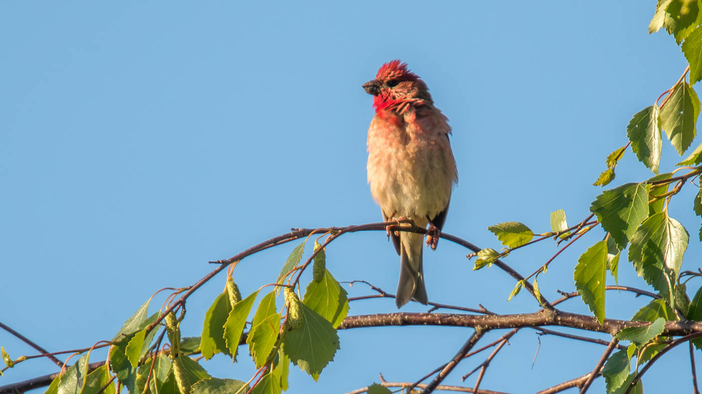 Hoe noordelijker we gaan hoe lichter het s ’nachts blijft. Al vroeg waren we wakker om buiten de vele tuinsoorten te fotograferen. Diverse Haakbekken, Kepen, Barmsijzen en deze keer ook een Taigagaai kwamen er eten. Ook een Rode Eekhoorn kwam op het vele voer af.
