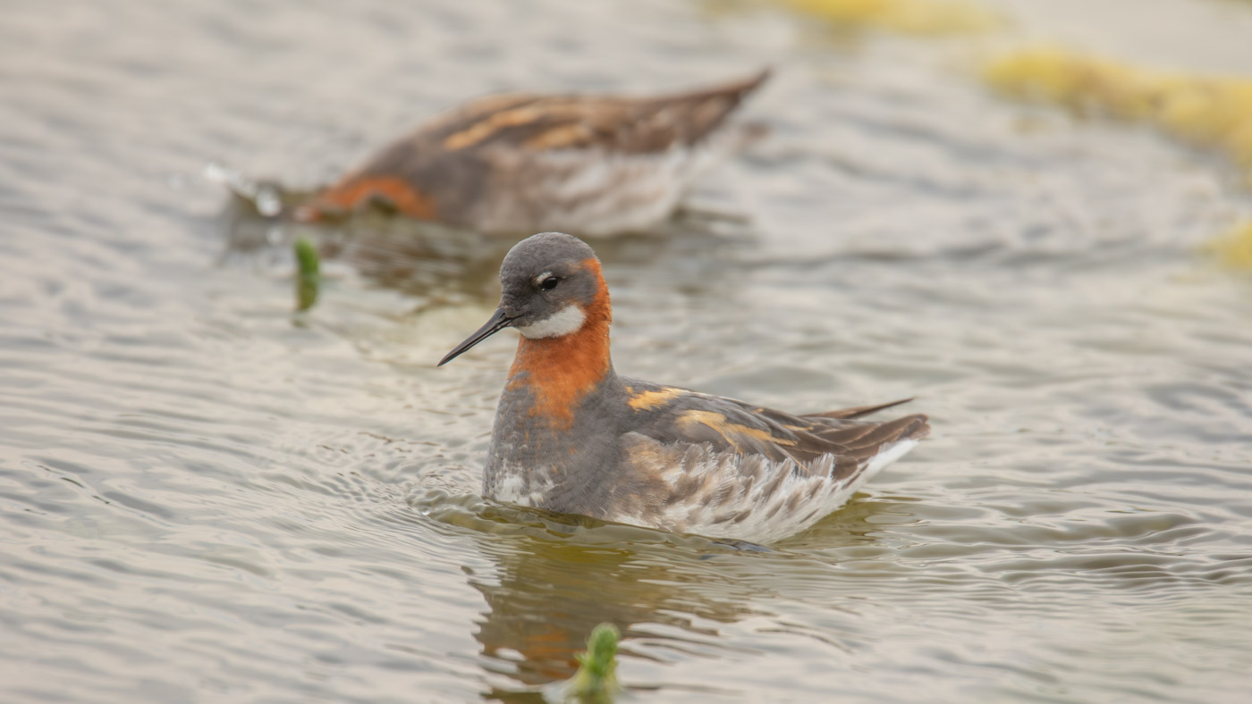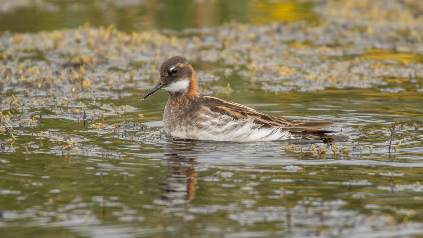 Rond 12 uur kwamen we aan bij de grens naar Noorwegen, waar we al snel door konden rijden. We vervolgden onze reis en bleven de rivier Tana volgen welke tevens de grens van Finland en Noorwegen stroomt. Het was ondertussen wel kouder geworden met af en toe zelfs een buitje. In de verte zagen we al het Varanger Fjord. Op het Fjord zwom een groep Grote Zee-eenden, Brilduikers en een Parelduiker. Diverse Ruigpootbuizerden zagen we onderweg op paaltjes zitten. We besloten om eerst naar Nesseby te gaan voordat we bij het hotel zouden inchecken. In Nesseby staat een klein nostalgisch kerkje met wat kleine plasjes eromheen. Hier hebben we rondgewandeld en zagen mooi de Kemphanen in prachtkleed die al aan het baltsen waren. Ook een enkele Rosse Grutto en wat Bonte Strandlopers liepen er rond te foerageren.