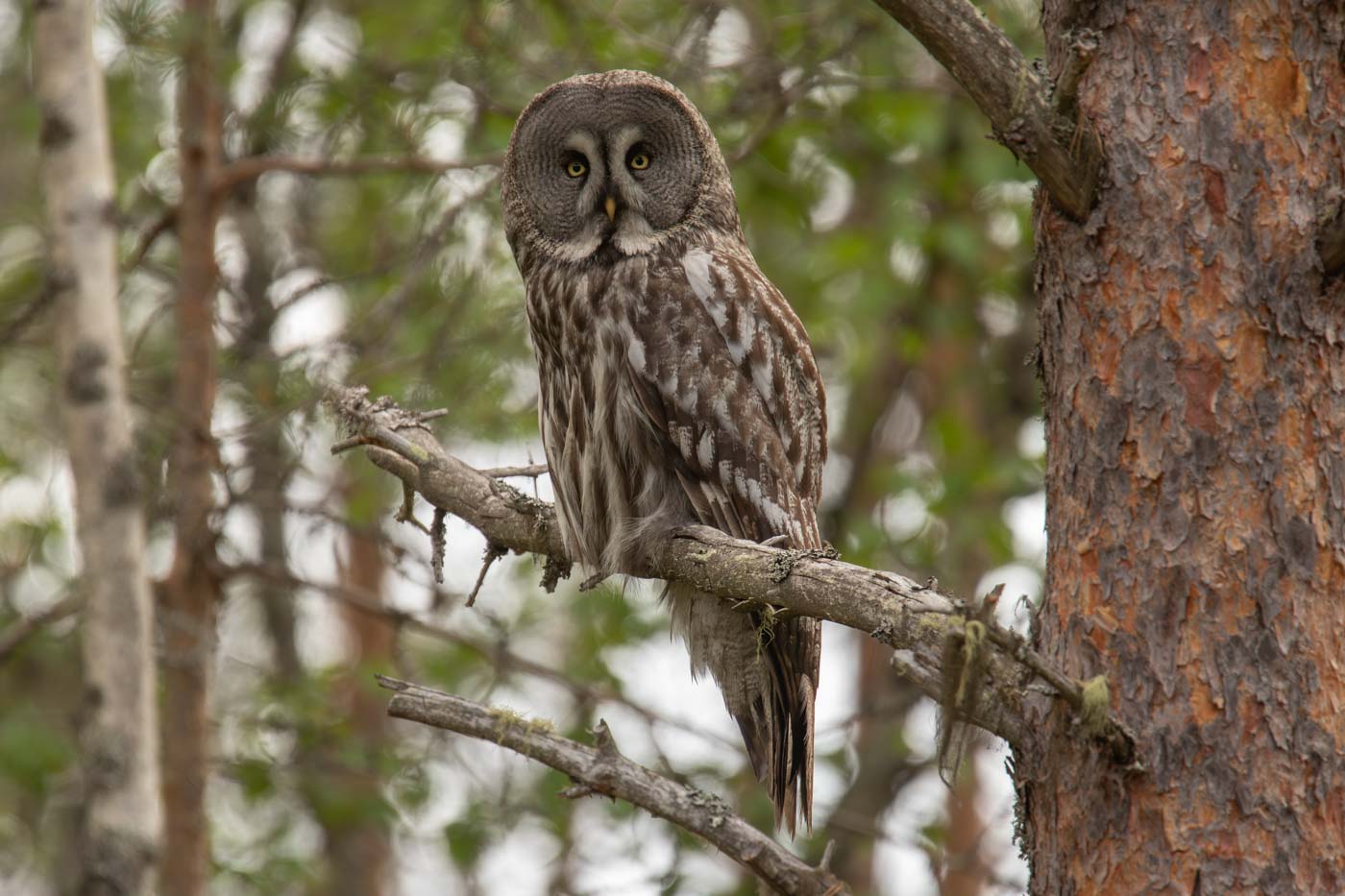 Tussen de Wilde Zwanen zatern er op het veld ook nog enkele Roeken en er vloog een Bruine Kiekendief over. Wat zuidelijker van Liminka in een stuk produktiebos wisten we een Laplanduil te zitten, maar ondanks de locatie ga deze maar eens zoeken. Aan de rand van het bos zat nog een Klapekster. Na een stukje lopen en speuren zagen we een Laplanduil tegen de stam zitten, wat een opvallend grote uil is dit zeg. De Laplanduil zat rustig op een tak en trok zich niets van ons aan. Helaas was de zon wat laag waardoor er een schaduw van een tak over de uil viel. Iets verderop zagen we het groot nest en ook nog een jonge Laplanduil ernaast zitten. Wat een prachtig begin van deze vakantie.