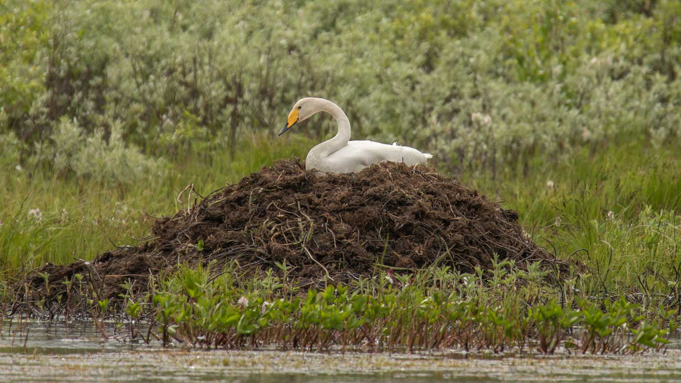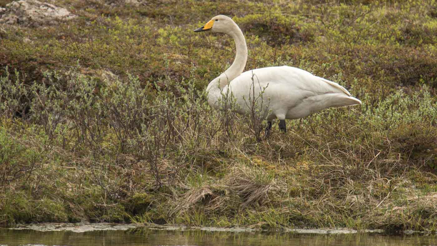 Er lag zlefs op diverse plaatsen nog een flink pak sneeuw, ook de temperatuur in juni was nog best laag met een koude wind. Bij de smeltende stroompjes zagen we diverse vogels; Bontbekplevier, Temmincks Strandloper, Strandleeuwerikken en IJsgorzen. Onze najaarsgasten in hun broedbiotoop.