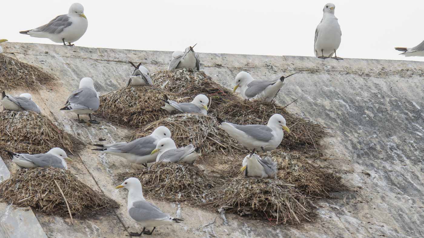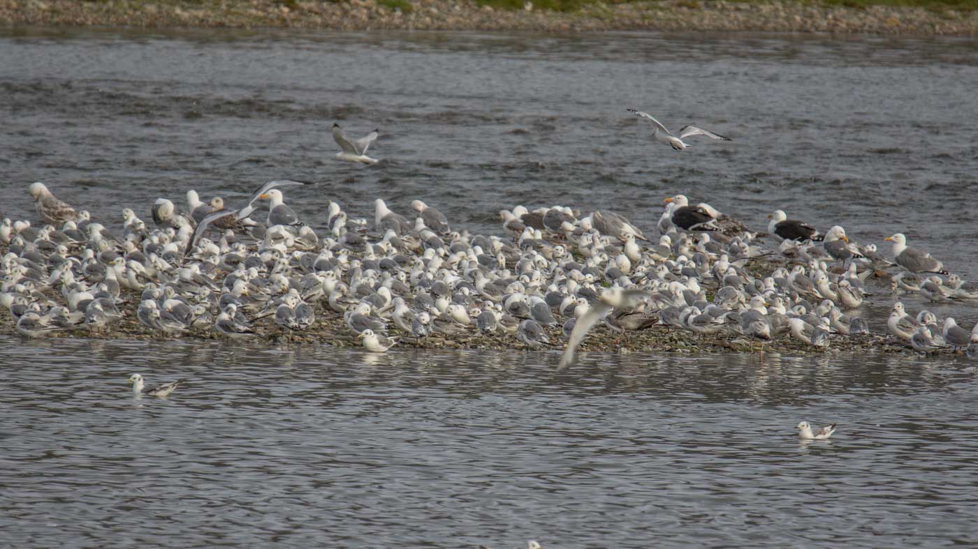 We zijn verder noordwaarts gereden tot aan het plaatsje Berlevag. De haven met de gebouwen zat volop Drieteenmeeuwen. Het was een kabaal van deze meeuwen, wel mooi om te zien. Iedere vensterbank was bezet door een nest van een Driteenmeeuw. Voorbij het plaatsje zaten wat Temmincks Strandlopers te baltsen.