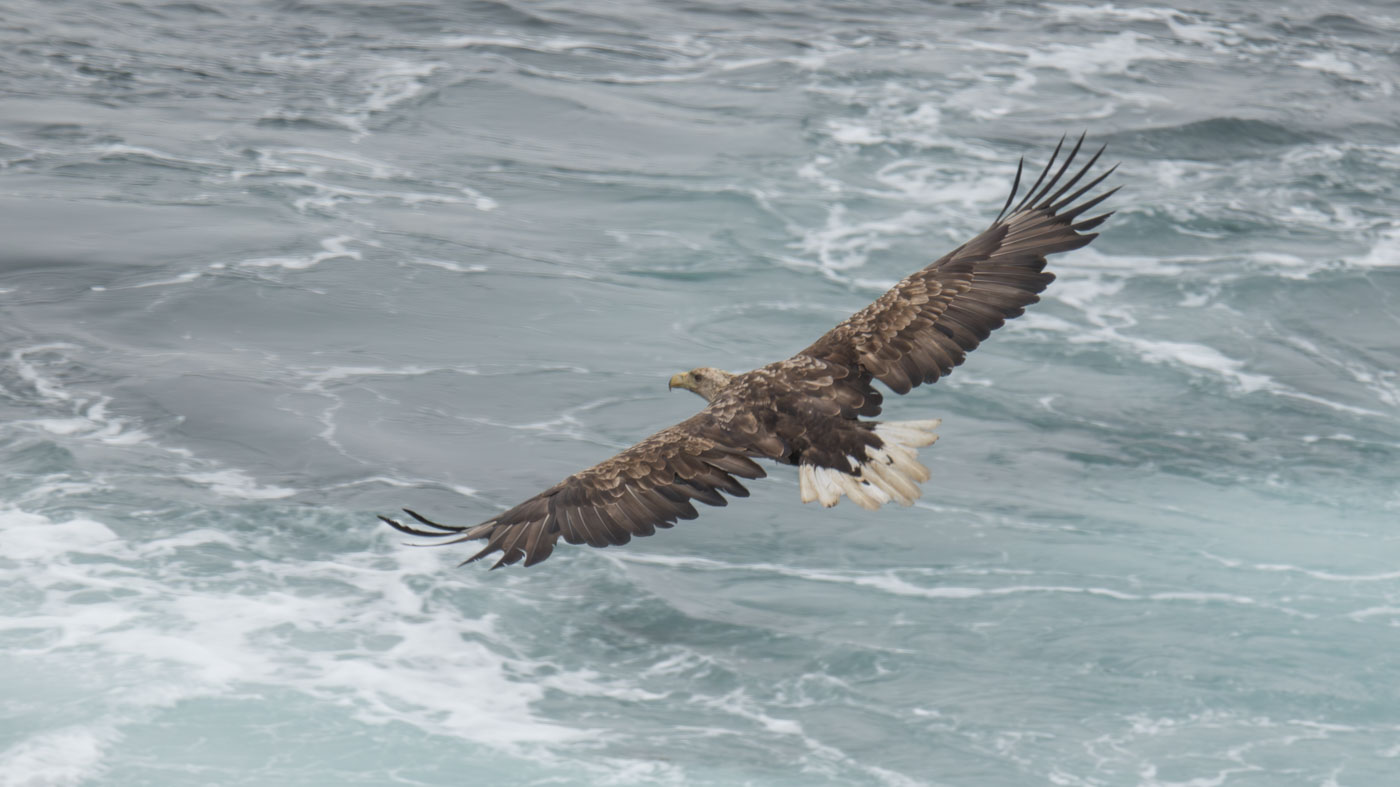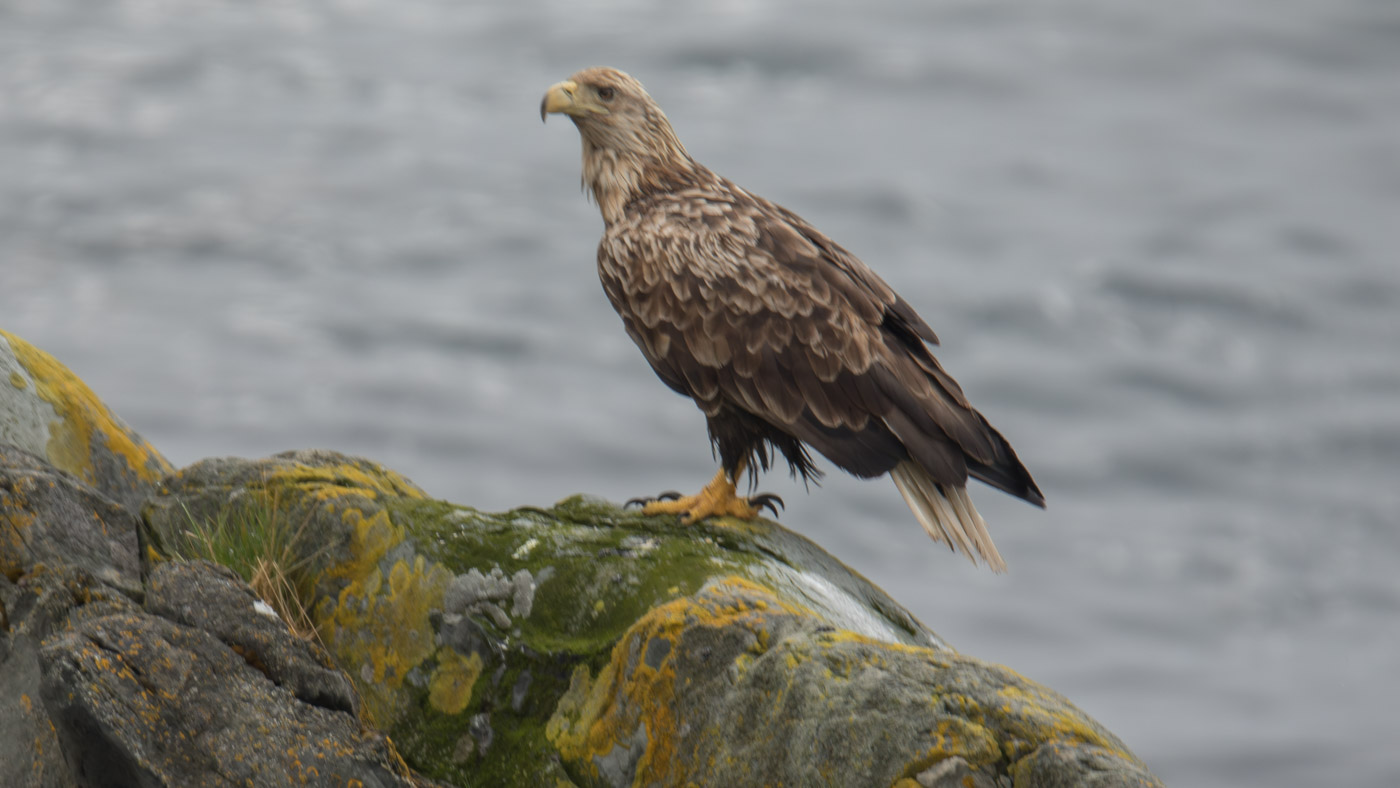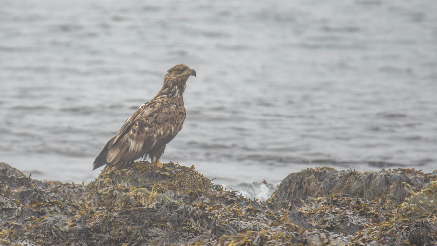 Het leek erop dat het weer deze dag wat beter zou zijn. Het was echter nog wel wat grauw. Rondom het hotel hoorden we een Groenling, Fitis en een Tjiftjaf zingen. We besloten om naar het eiland Hornoy te gaan. Bij Vadsø zagen we nog een Rosse Grutto en een prachtige Zeearend op de rotsen zitten. Een Ruigpootbuizerd zat rustig op de uitkijk en wilde wel op de foto. Vanaf het vastenland zijn we door de tunnel naar Vardø gereden. Hier hebben we nog even rondgekeken alvorens we naar de boot gingen. Grote Mantelmeeuwen met jongen zaten op diverse daken. In de haven zat nog een Zwarte Zeekoet en enkele Visdieven. Hier zagen we ook nog een enkele Steenloper zitten die nieuw voor deze reis was.