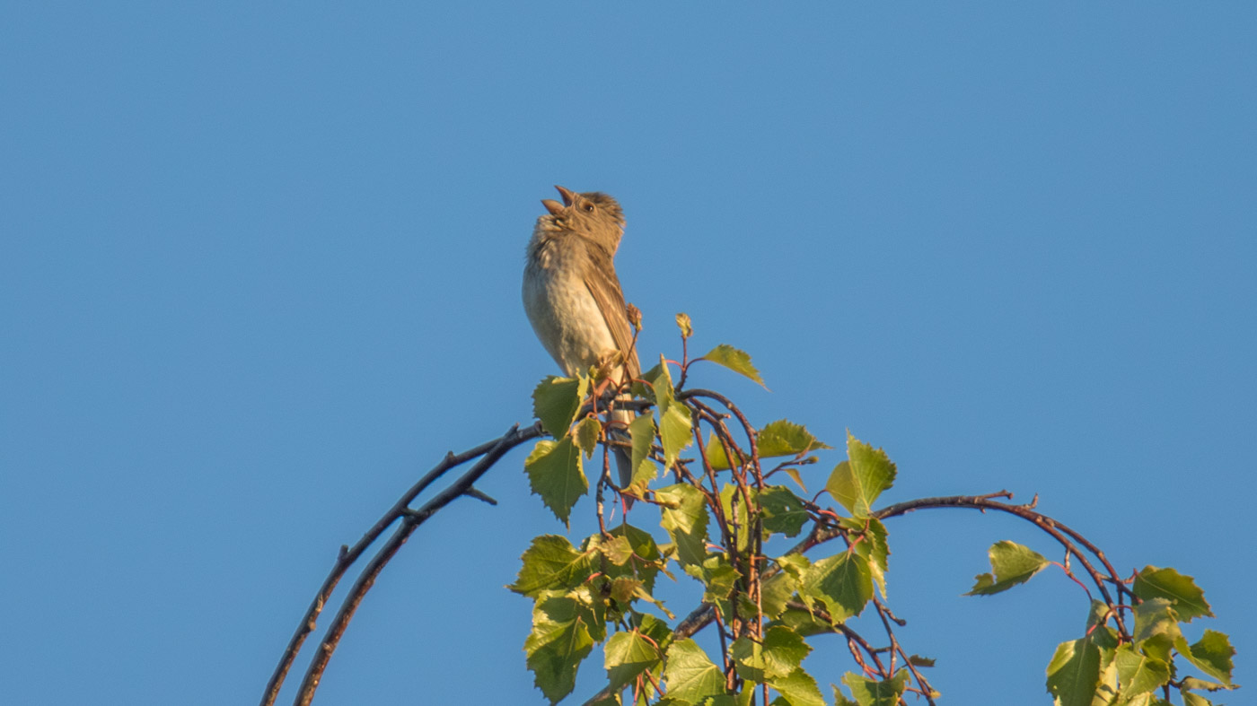De poging om ook nog een Ruigpootuil te zien was helaas mislukt. Een gebied wat zuidelijker van Oulu waren volgens Observado,org Ortolanen gemeld. Na wat zoeken in dat gebied hoorde we een Ortolaan in de verte zingen. Een mooi mannetje kwam er zelfs met voer aanvliegen. Aangezien er dus jonge vogels waren besloten we hier snel weg te gaan om deze niet verder te verstoren.