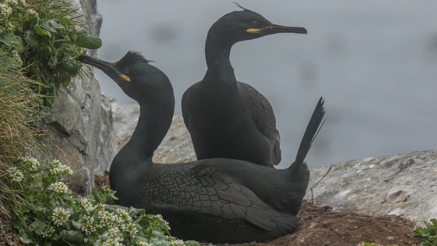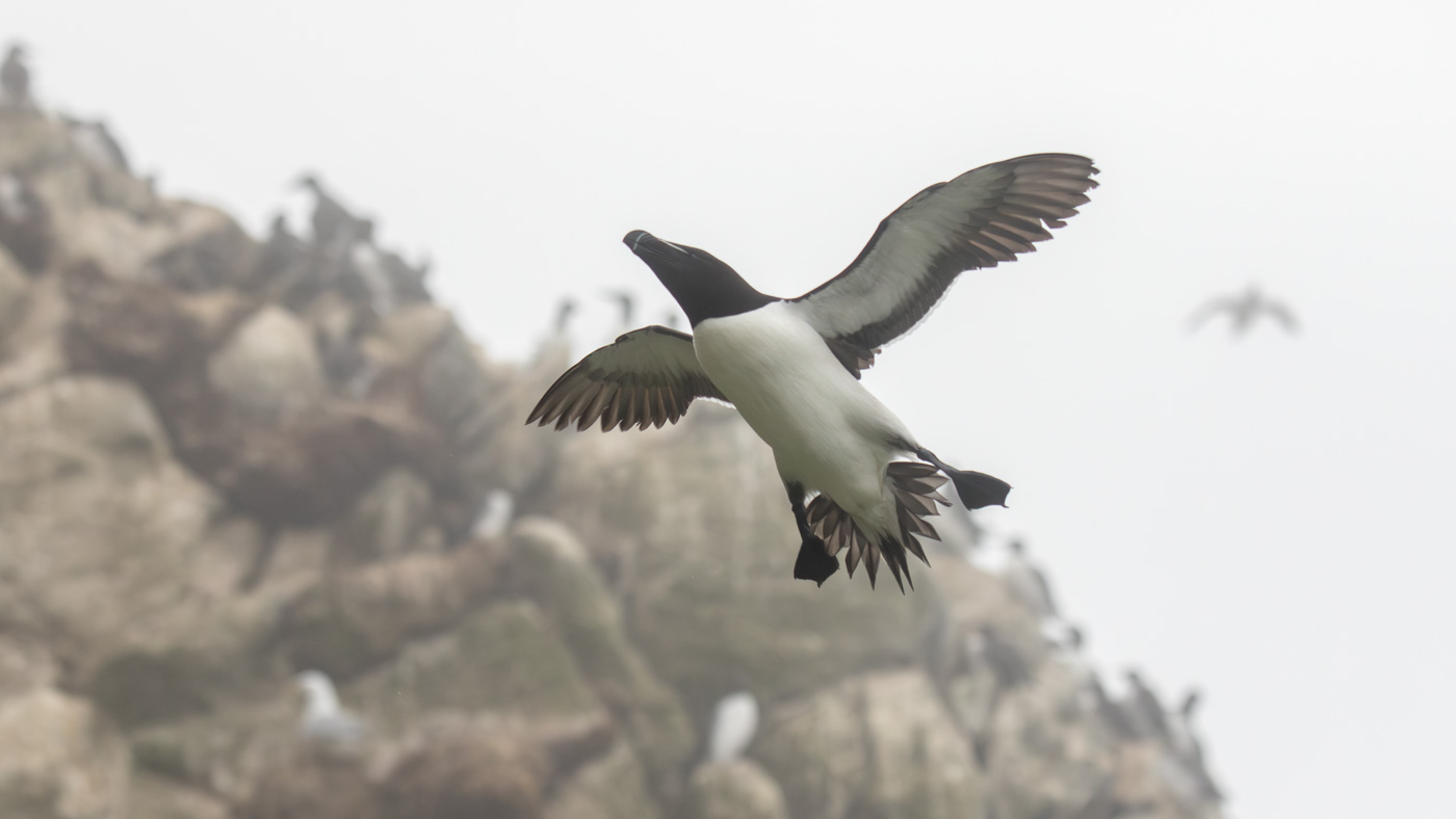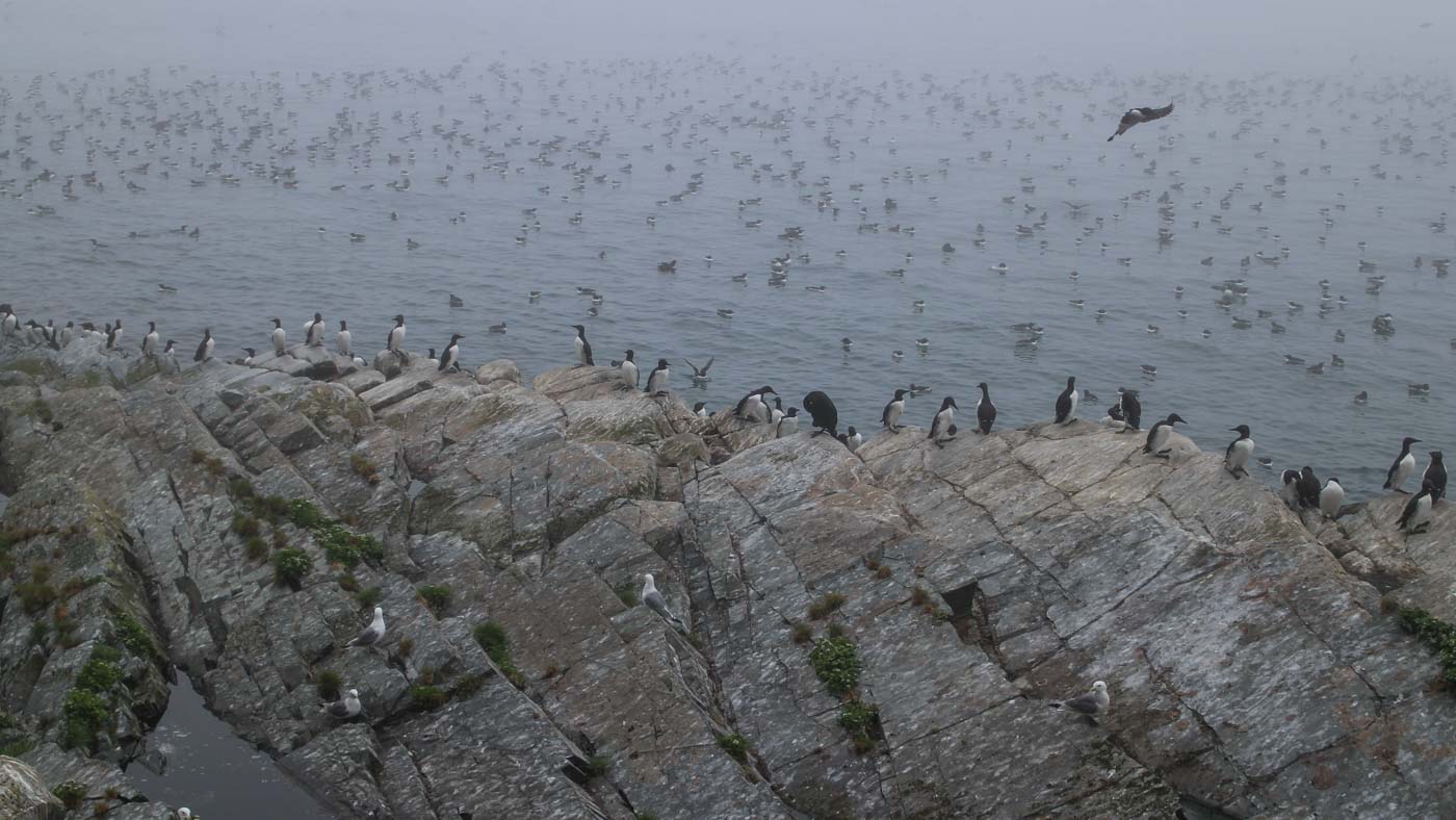 Na de kaartjes voor de boot gekocht te hebben vertrokken we met een klein bootje richting Hornoy. Aangekomen op dit eiland is het een lawaai van zeevogels. Vele Papegaaiduikers, Zeekoeten, Kuifaalscholvers zaten er op en om de rots. Je wist niet waar je moest kijken. Helaas konden we niet naar boven op het eiland omdat er al eerder een rotsblok op het pad was gevallen. Maar dat mocht de pret niet drukken, we genoten hier al enorm. Tussen de vele Zeekoeten zaten ook nog enkele Kortbekzeekoeten, te herkennen aan de witte streep op hun snavel. Slechts enkel zangvogels zaten er op het eiland, witte Kwikstaart en Scandinavische Oeverpieper.