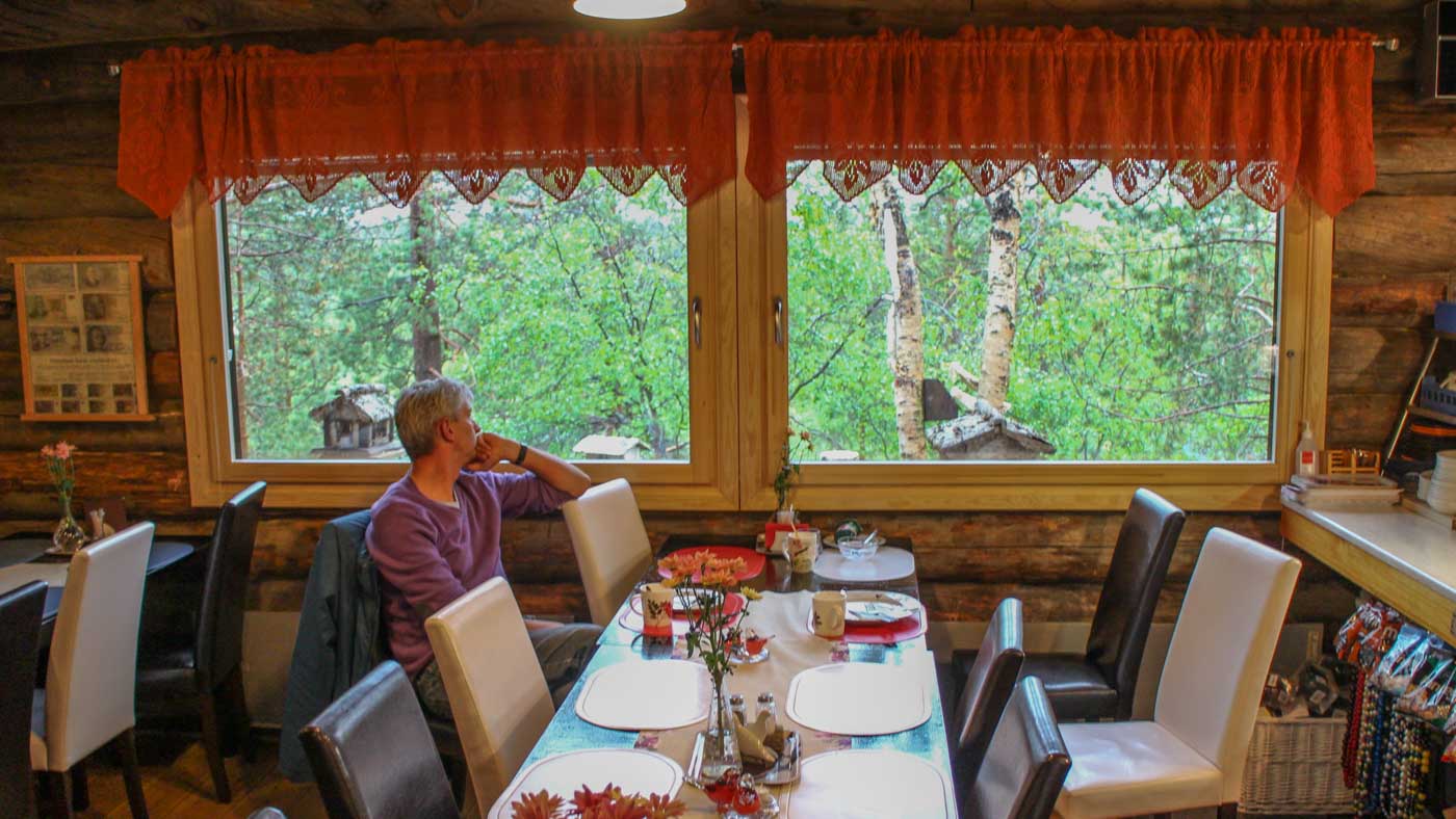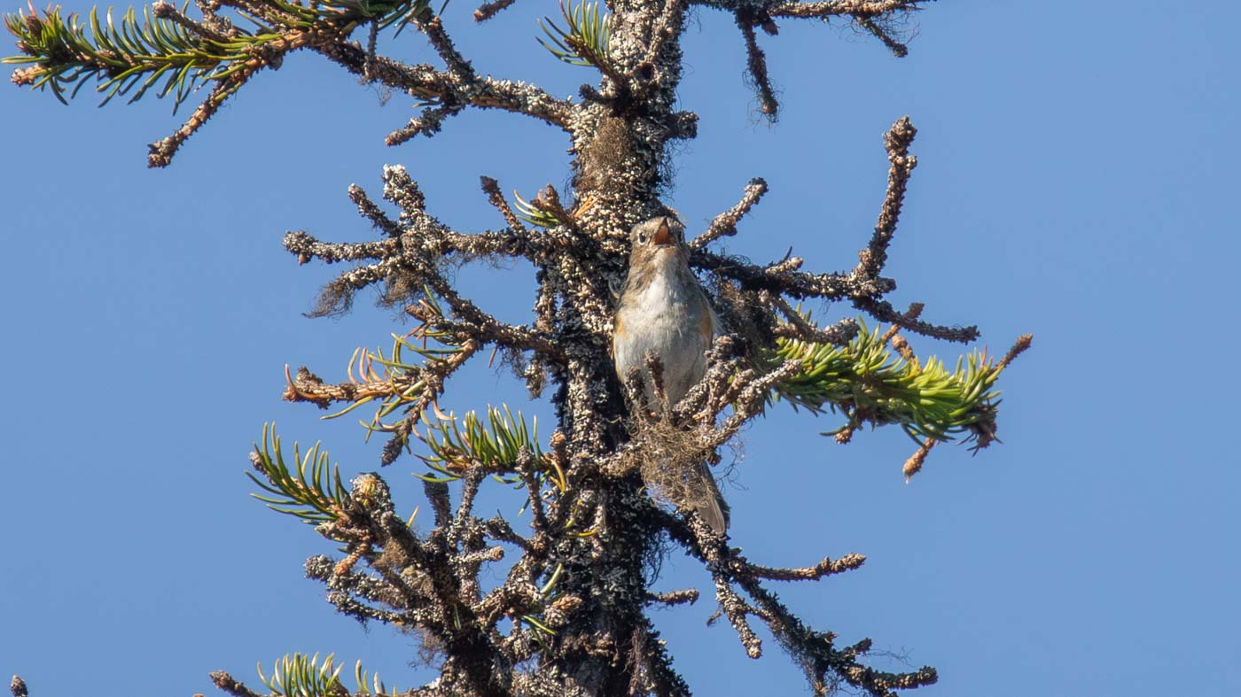 We besloten omdat we nog wat tijd hadden om met de auto de omgeving verder te bekijken. Watersnippen waren aan het baltsen rondom een meer. In de verte hoorden we Korhoenders bulderen. En natuurlijk liepen er ook weer Rendieren rond, waarvan een wit exemplaar. Op diverse plaatsen hingen nestkasten die blijkbaar bedoeld en bewoond waren door de Bruinkopmezen. Diverse Bruinkopmezen zagen en hoorden we er dan ook. Uiteindelijk zijn we weer bij ons hotel aangekomen waar we gegeten hebben. De eetkamer in het hotel kijkt uit over de voedertafels, als vogelaar wordt je hier wel enorm afgeleid. Haakbekken zitten zelfs maar een meter vanaf het raam af.