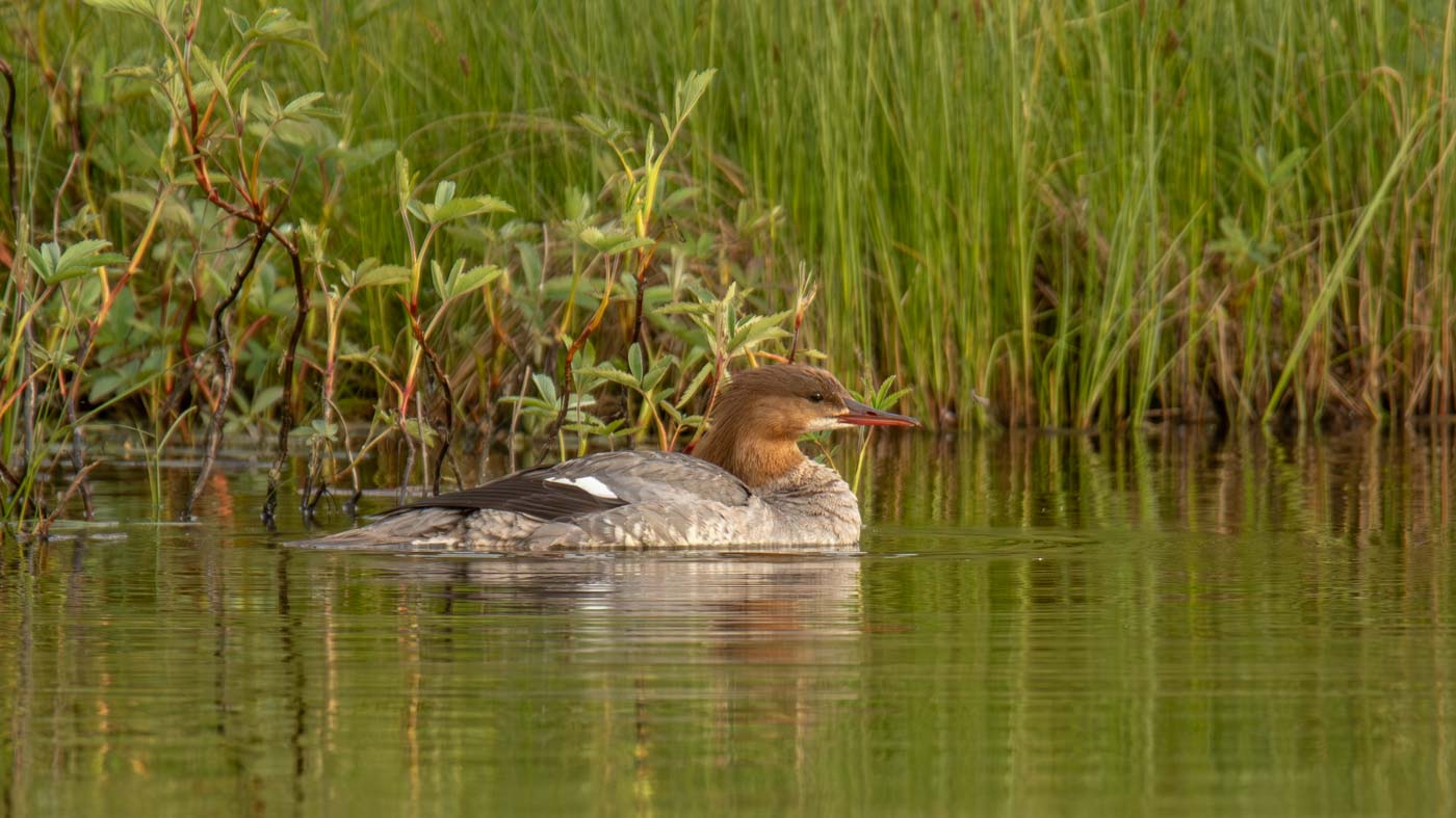Al vroeg was ik zelf wakker, het was nog rond 3 uur en al licht aan het worden, In de verte hoord eik een al een Roodmus zingen. Het hotel ligt direct aan het water, waar al veel te zien is. Naast de Roodmus zongen er ook Rietgorzen, Rietzangers en zelfs Oeverlopers. Op het water zwom een vrouwtje Middelste Zaagbek. Aan de andere zijde van het hotel waren ook enkele bosvogels actief; Grote Bonte Specht, Bonte Vliegenvanger, Vink. In een struikenpartij was een voor mij onbekende zangvogel aan het zingen. Na wat zoeken kwam deze tevoorschijn, een Struikrietzanger.