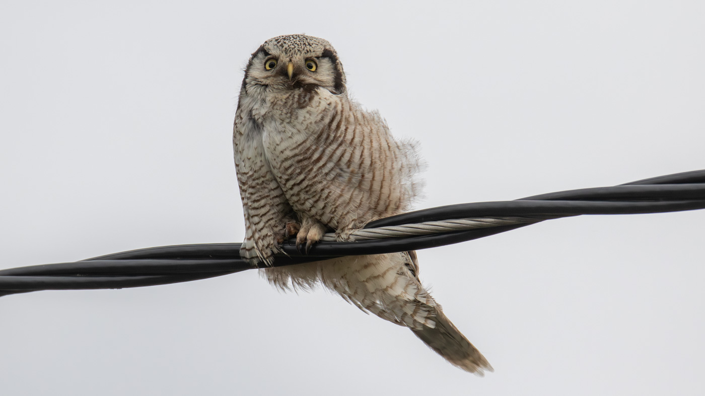 De laatste dag van onze vogelreis. We hadden nog even tijd voordat we bij de luchthaven moesten zijn. Daarom zijn we nog naar het meertje gegaan waar de Kuifduiker zat. Ook een Middelste Zaagbek en Bonte Kraai was er mooi te zien. Een Bonte Vliegenvanger vloog met voer naar de nestkast. Maar als afsluiting van onze reis zijn we nog naar de Laplanduil gegaan. Nu zat deze prachtig in het licht, we hebben onze kaartjes nog verder volgeschoten. Een prachtige afsluiting van onze reis.