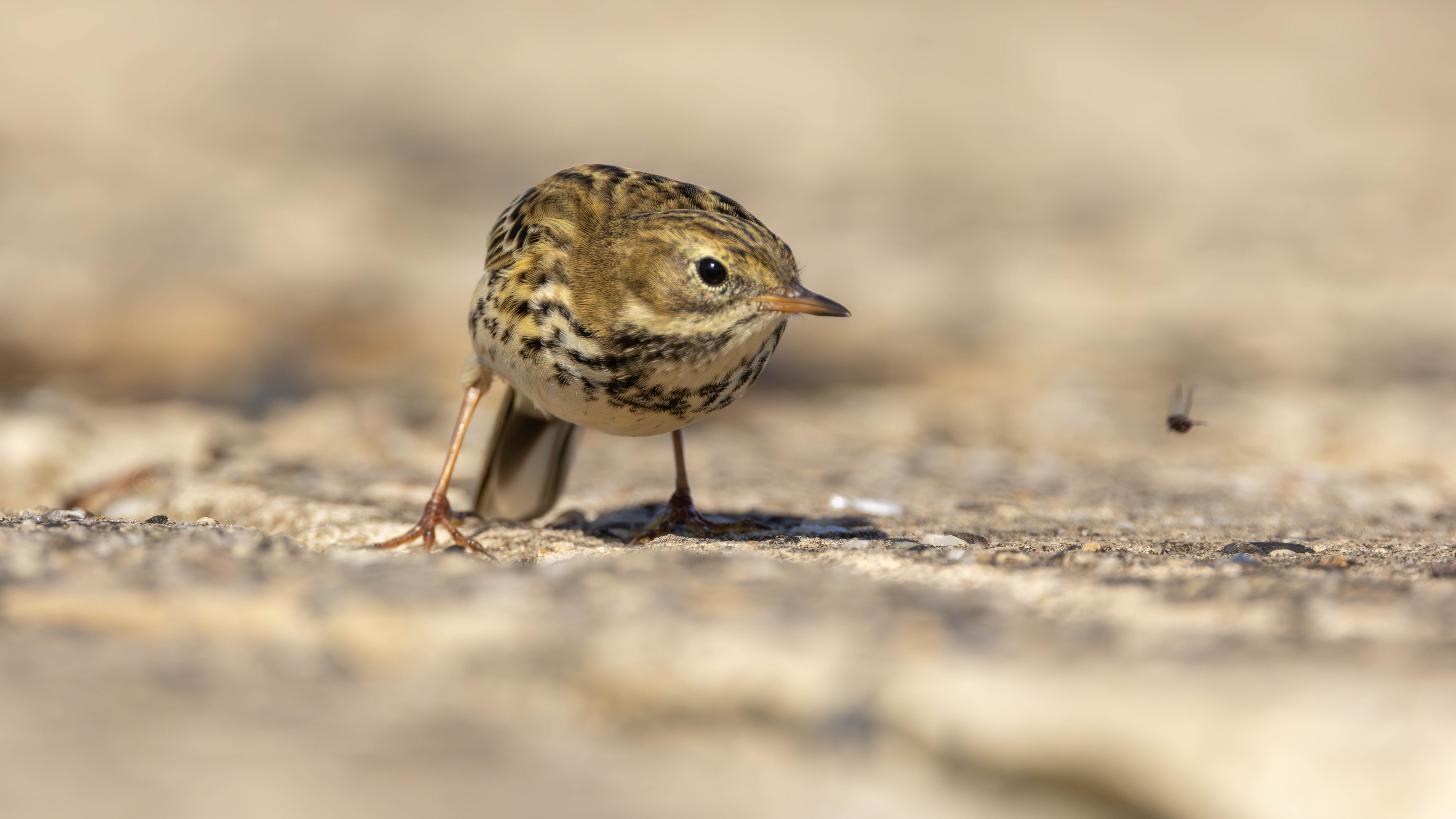 Met de lange trap zijn we richting de vuurtoren gelopen. Het was nu wel wat beter weer geworden voor de fotografen. Met de trap in het noorden kwamen we weer bij het Noord-strand uit. Op de pier zaten diverse Graspiepers, Tapuiten en een Gele Kwikstaart te genieten van de vele vliegjes.