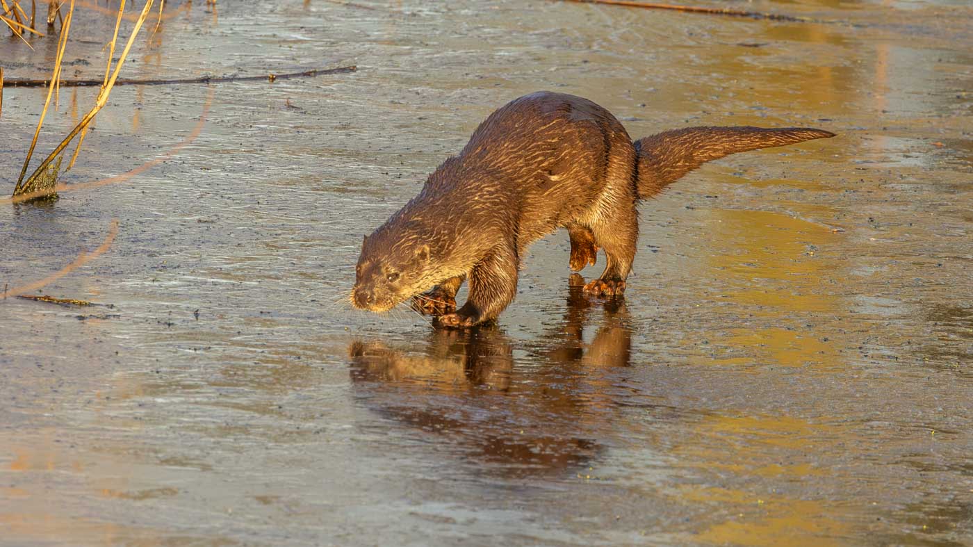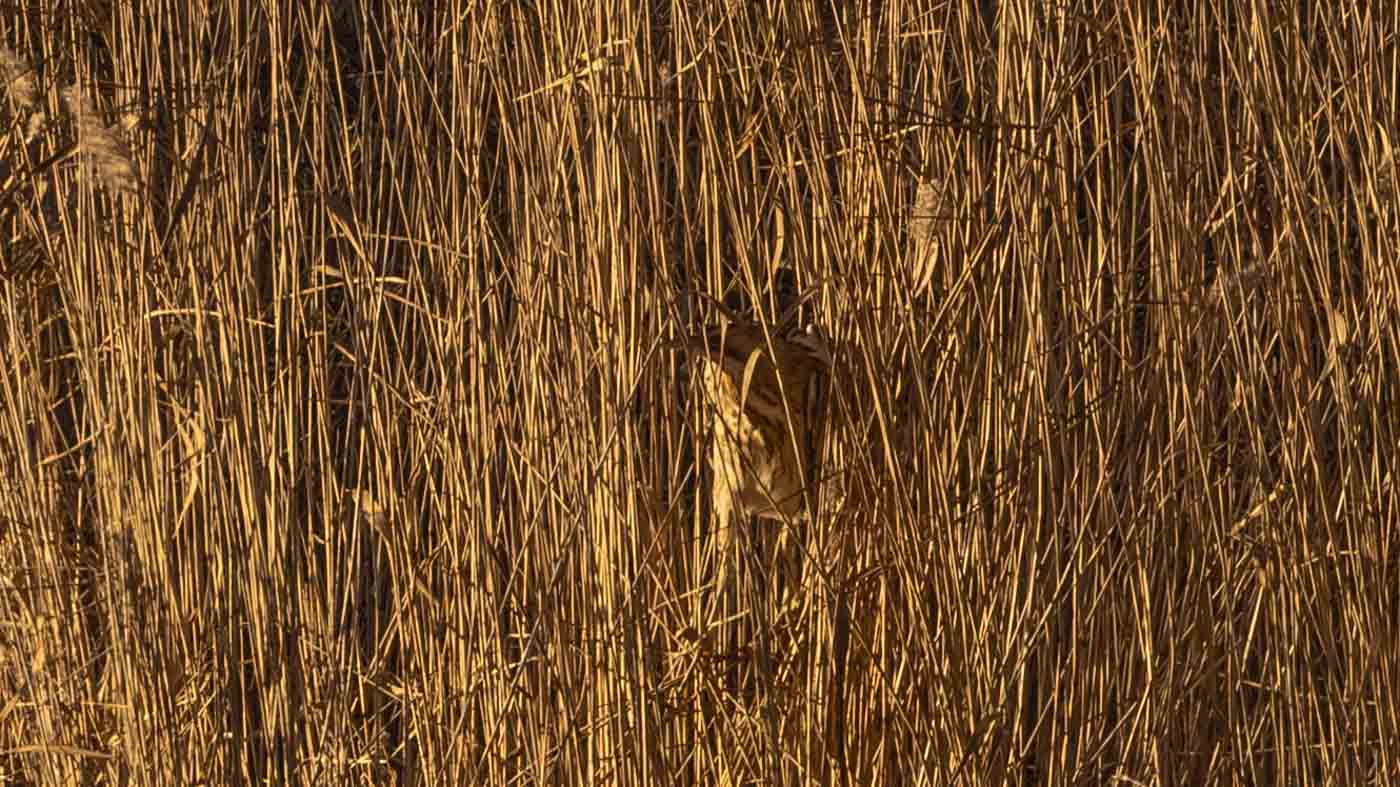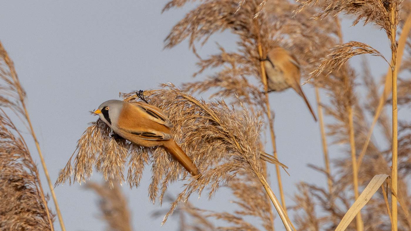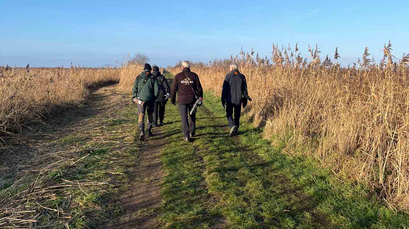 We wandelden verder naar de nieuwe uitkijktoren, een paar kilometer verderop. Hier zagen we de Waterral, die zelfs het ijs overstak (heel leuk en mooi te zien). Ook een Vos liep het ijs over, heel gaaf. In de verte zagen we weer een paar Zeearenden, een Blauwe Reiger stak nog het ijs over, en we zagen zelfs een leuk groepje Baardmannetjes in het riet. Dit moest natuurlijk even goed worden vastgelegd. Maar ja, de Baardmannetjes weten niet wat stilzitten is. Na een tijdje toch gelukt om ze mooi op de foto te zetten.