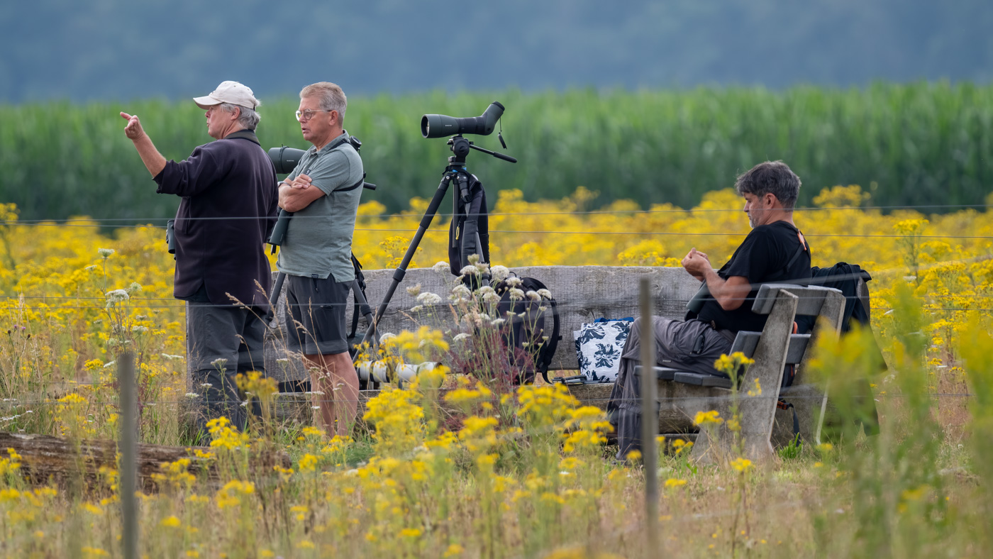 Licht bewolkt, weinig wind uit zuid, maximaal 24 ⁰C. Als er om half 8 wordt begonnen met het 25e jaar tellen op onze telpost is het zelfs onbewolkt. Wat zal dit jaar ons brengen? Vast weer de nodige records. Het eerste half uur komen er al heel wat Gierzwaluwen over en ook een Goudplevier (vroegste ooit, was 17 juli in 2020). Daarna komen er nog steeds Gierzwaluwen over, tussen de 10 en 80 vogels per uur. Leuk zijn de 2 Witgatjes die ook al op trek zijn. Het is lekker weer en er vliegen dus ook al vlinders langs, Atalanta’s en Dagpauwogen. Verder is er weinig trek, een Blauwe Reiger en een Aalscholver. Er wordt tot 2 uur ’s middags door geteld.
