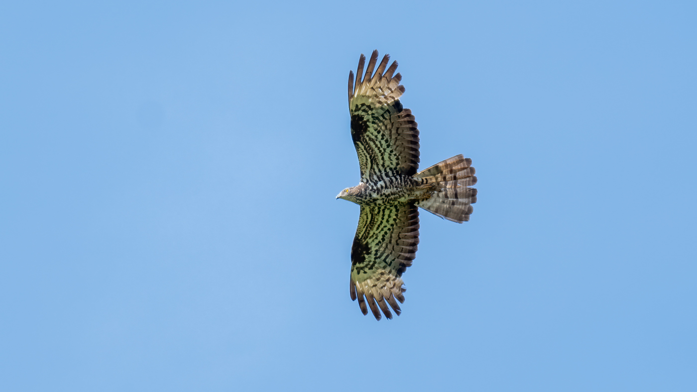 Licht tot half bewolkt, weinig wind uit zuidoost, later zuidwest, 28 ⁰C. Nadat er vooral Gierzwaluwen zijn geteld (maar ook andere soorten) komt tegen 10 uur de knaller: Slangenarend! De derde alweer voor deze telpost (ook op 13 augustus 2020 en 19 juli 2023) en fraai in beeld. Bestudering van de foto’s leidt tot de conclusie dat dit een derde jaar vogel is, dus in 2022 geboren. De vogel is na zo’n 20 minuten richting Oss uit beeld geraakt. Anderhalf uur later komt er een groepje Ooievaars over, groepje want het zijn er maar 3. Het is inmiddels half 2 als er een volwassen Zwarte Ooievaar overvliegt. De Gierzwaluwen blijven de hele dag vliegen dus het is al 4 uur als er wordt gestopt. Ter plaatse was er ook van alles te zien; 37 watersnippen, een Groenpootruiter, 4 Wespendieven, een Bruine Kiekendief en 3 Boomvalken.