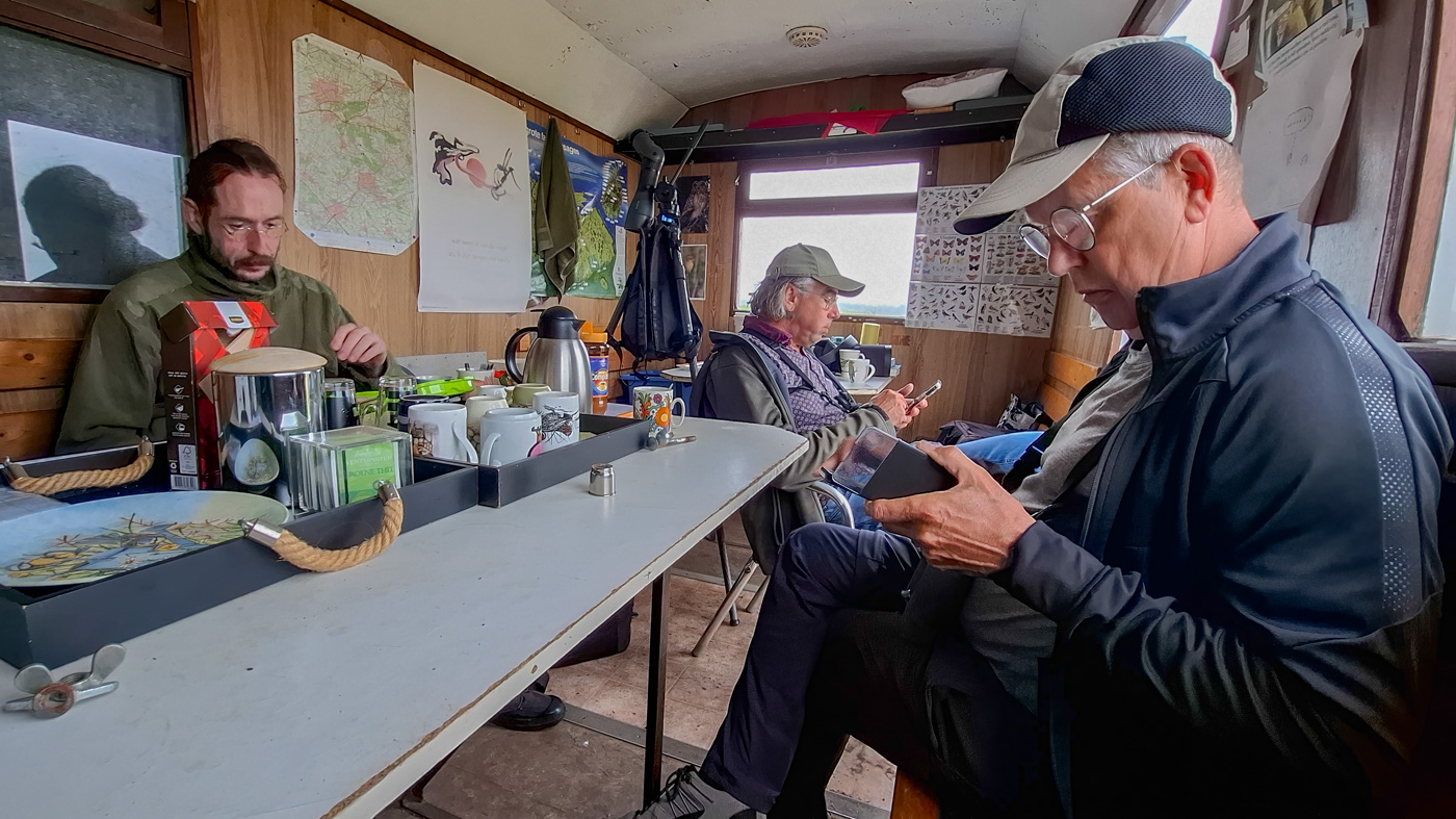 Wisselend bewolkt, matige iets aantrekkende zuidwesten wind, 25 ⁰C. Goede zwaluwentrek vanmorgen (tientallen per uur) en ook de Boompiepers vliegen goed. Om half 10 komt er een Groenpootruiter over getrokken en drie kwartier later een man Bruine Kiekendief. Na 11 uur is de trek wat minder en om half 1 komt er een kiekendiefvrouwtje langs. Het is er een met een witte stuit. Er worden vingers geteld en dat zijn er 5 dus dit is een Blauwe Kiekendief, de eerste dit jaar en best vroeg (ons record staat scherp op 29 juli, in 2018). Daarna vliegen er nog wat zwaluwen en Gele Kwikstaarten.